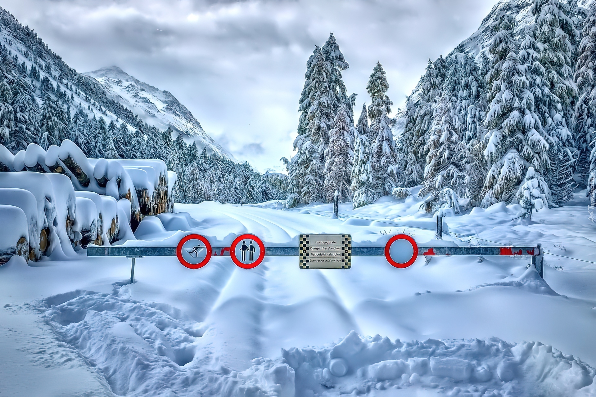 Edytor tapety: Zima, Góry, Las, Szlaban