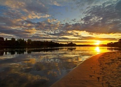 Edytor tapety: Zachód, Słońca, Rzeka, Plaża