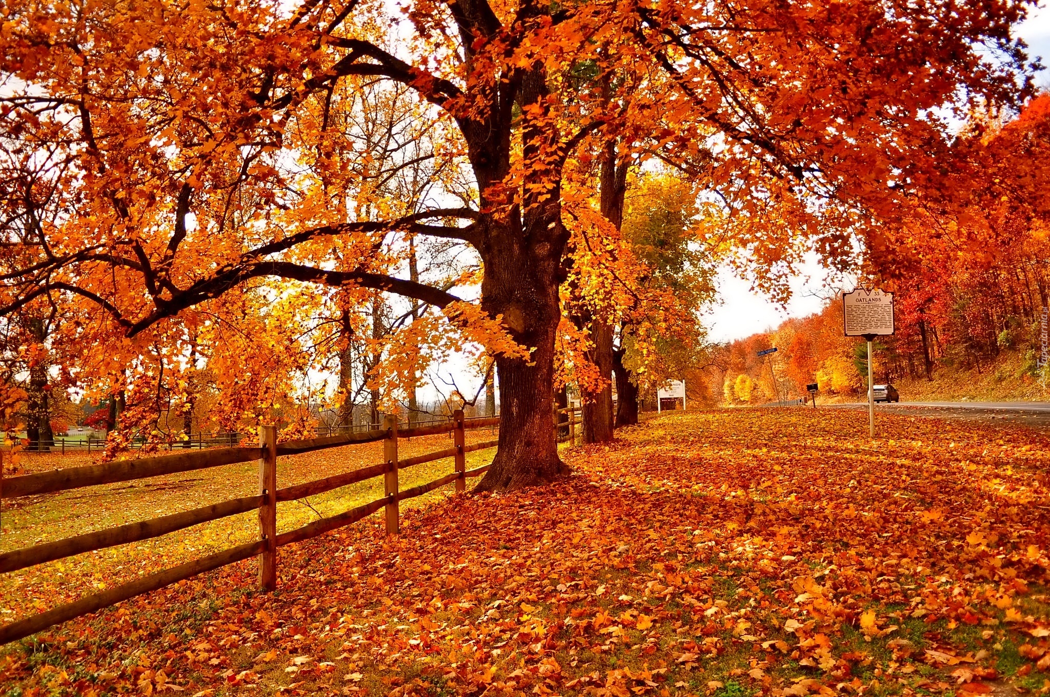 Edytor tapety: Jesień, Drzewa, Droga