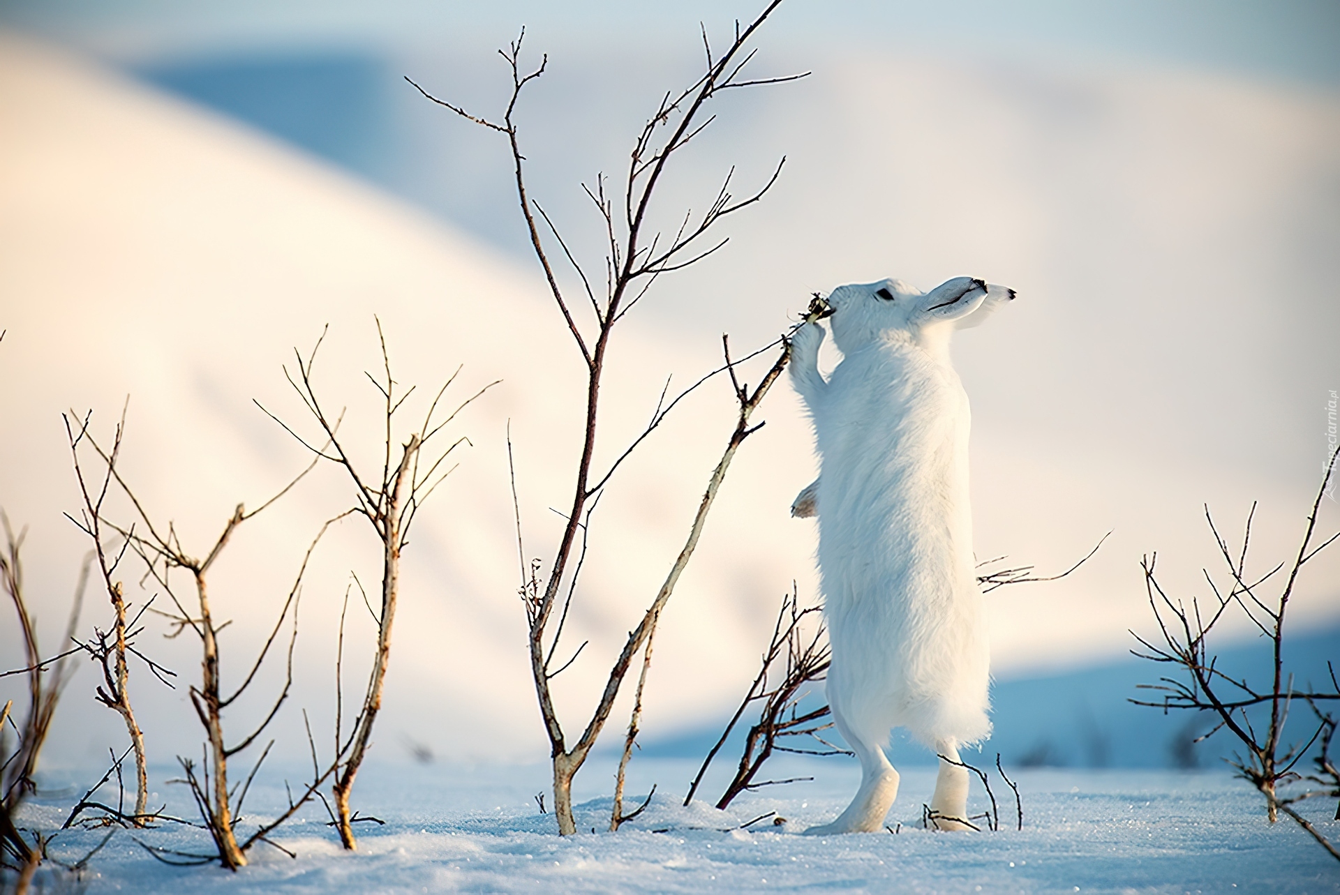 Edytor tapety: Zima, Śnieg, Biały, Zając, Drzewka
