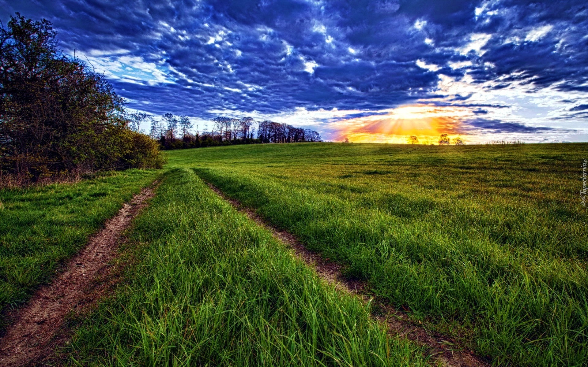 Edytor tapety: Łąka, Chmury, Zachód Słońca