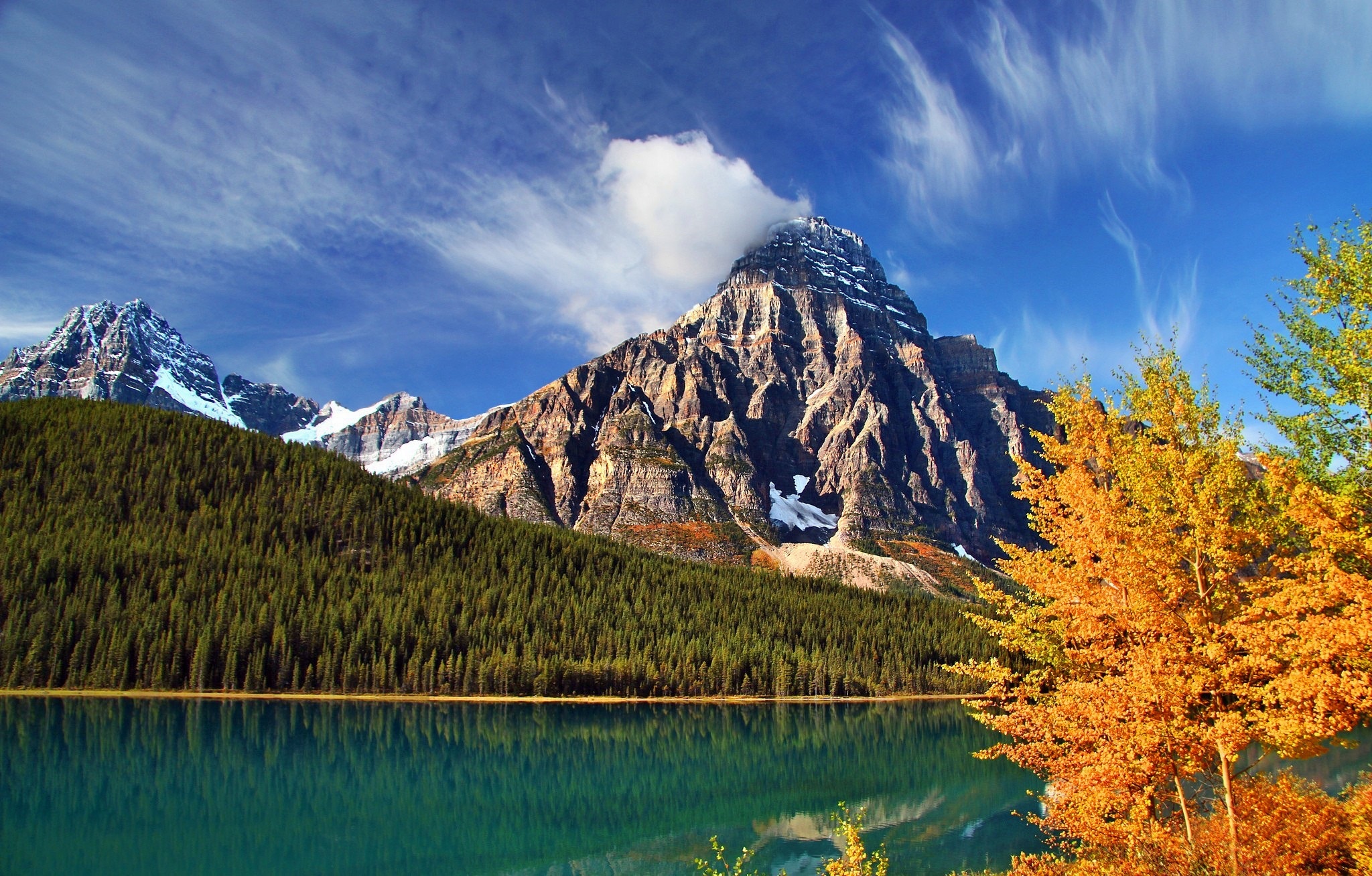 Edytor tapety: Góry, Lasy, Jezioro, Jesienne, Drzewo