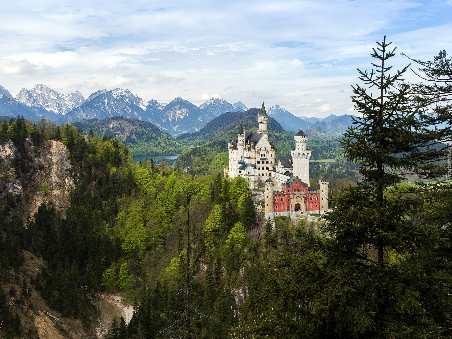 Edytor tapety: Zamek, Neuschwanstein, Góry, Lasy