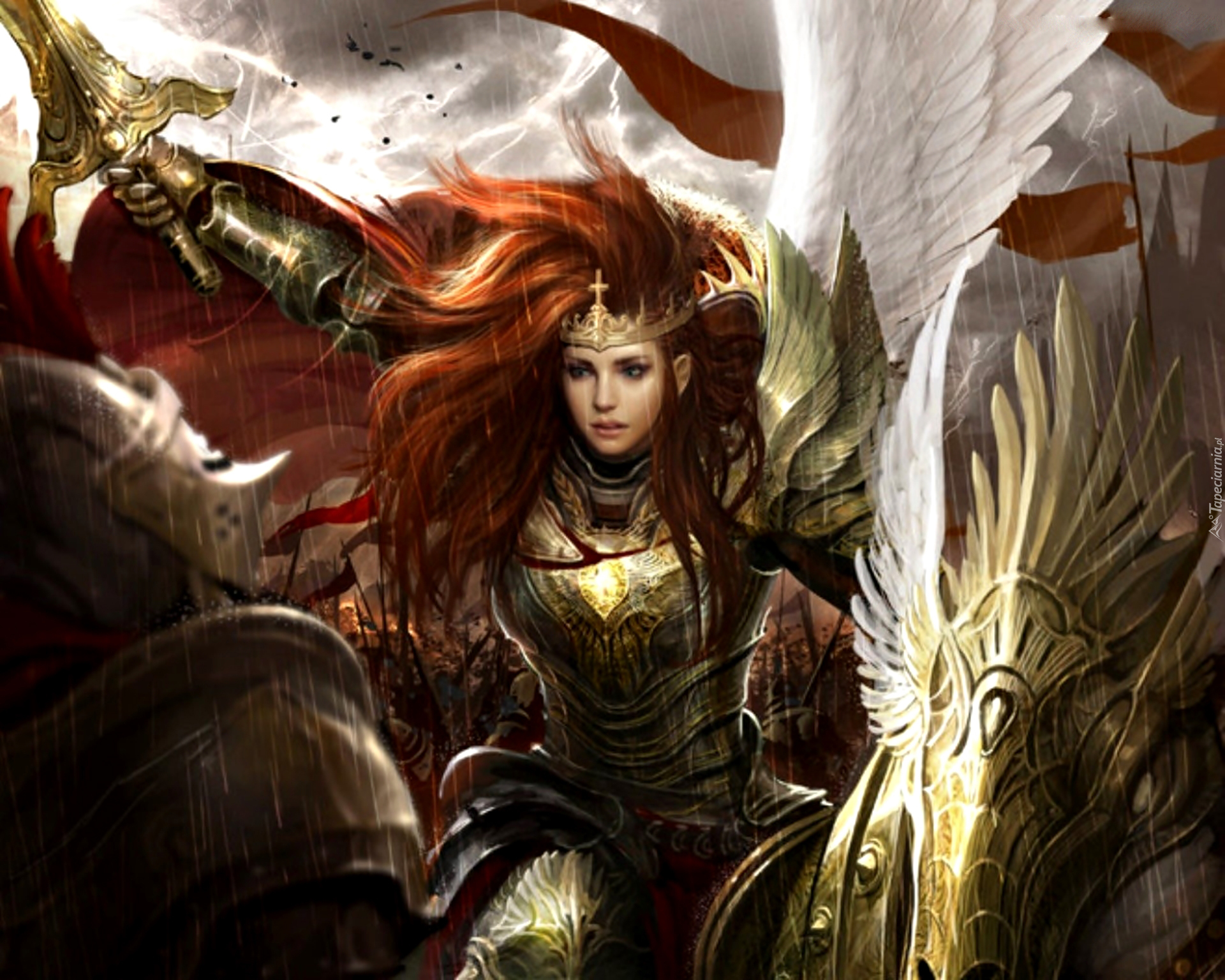 Edytor tapety: Kobieta, Rozwiane, Włosy, Zbroja, Tarcza