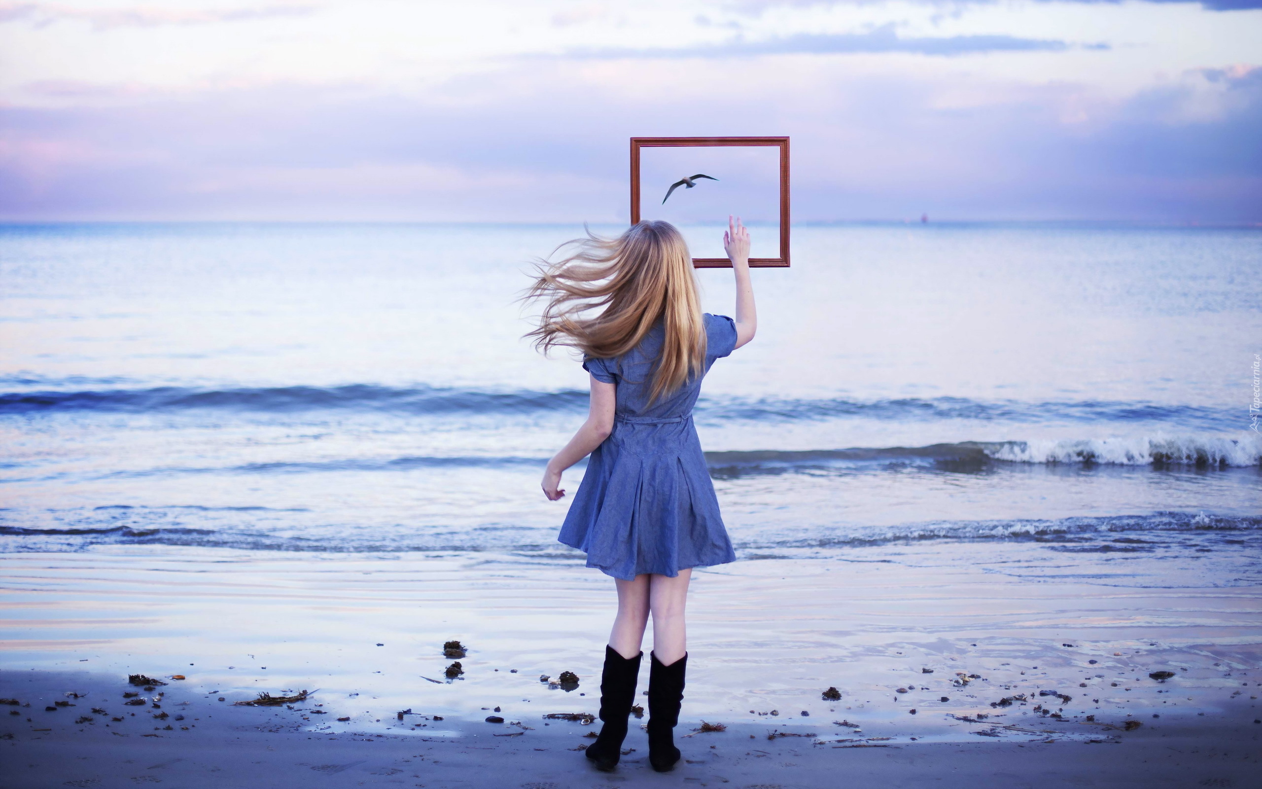 Edytor tapety: Dziewczynka, Morze, Ramka