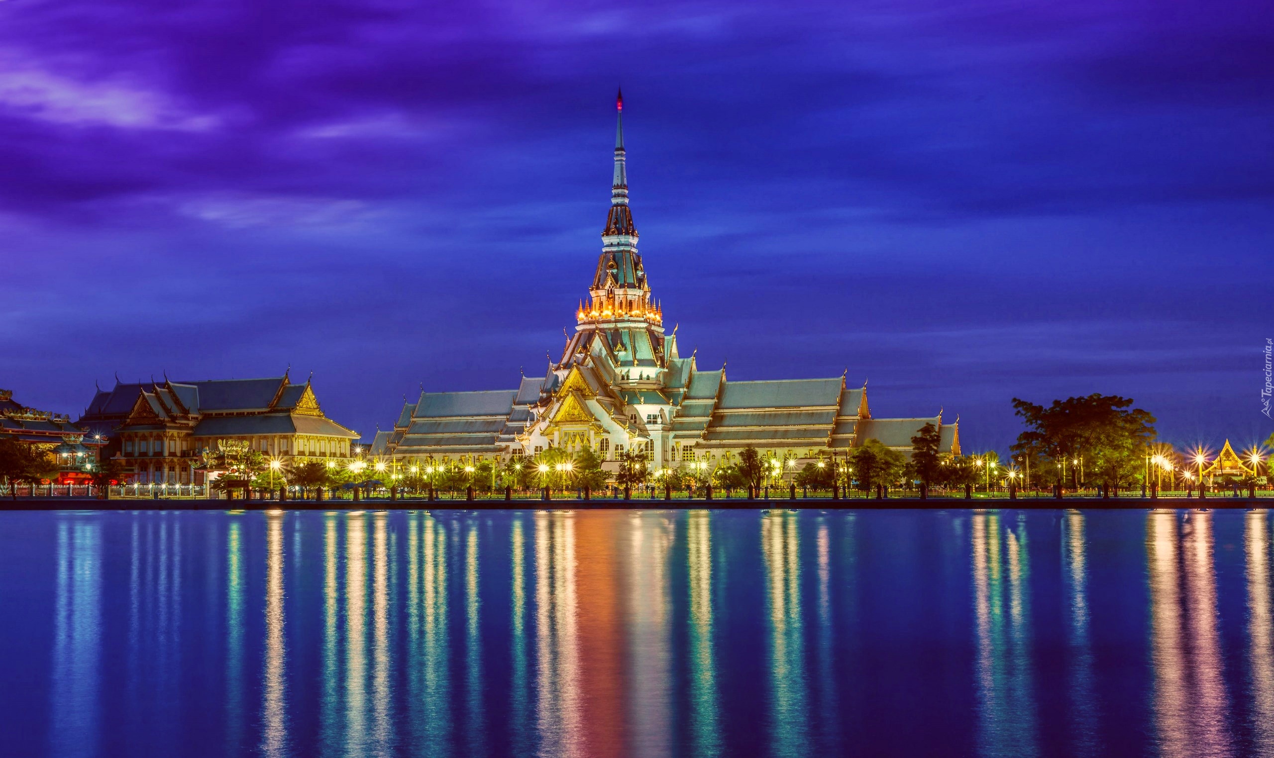 Edytor tapety: Tajlandia, Buddyjska, Świątynia, Światła, Odbicie