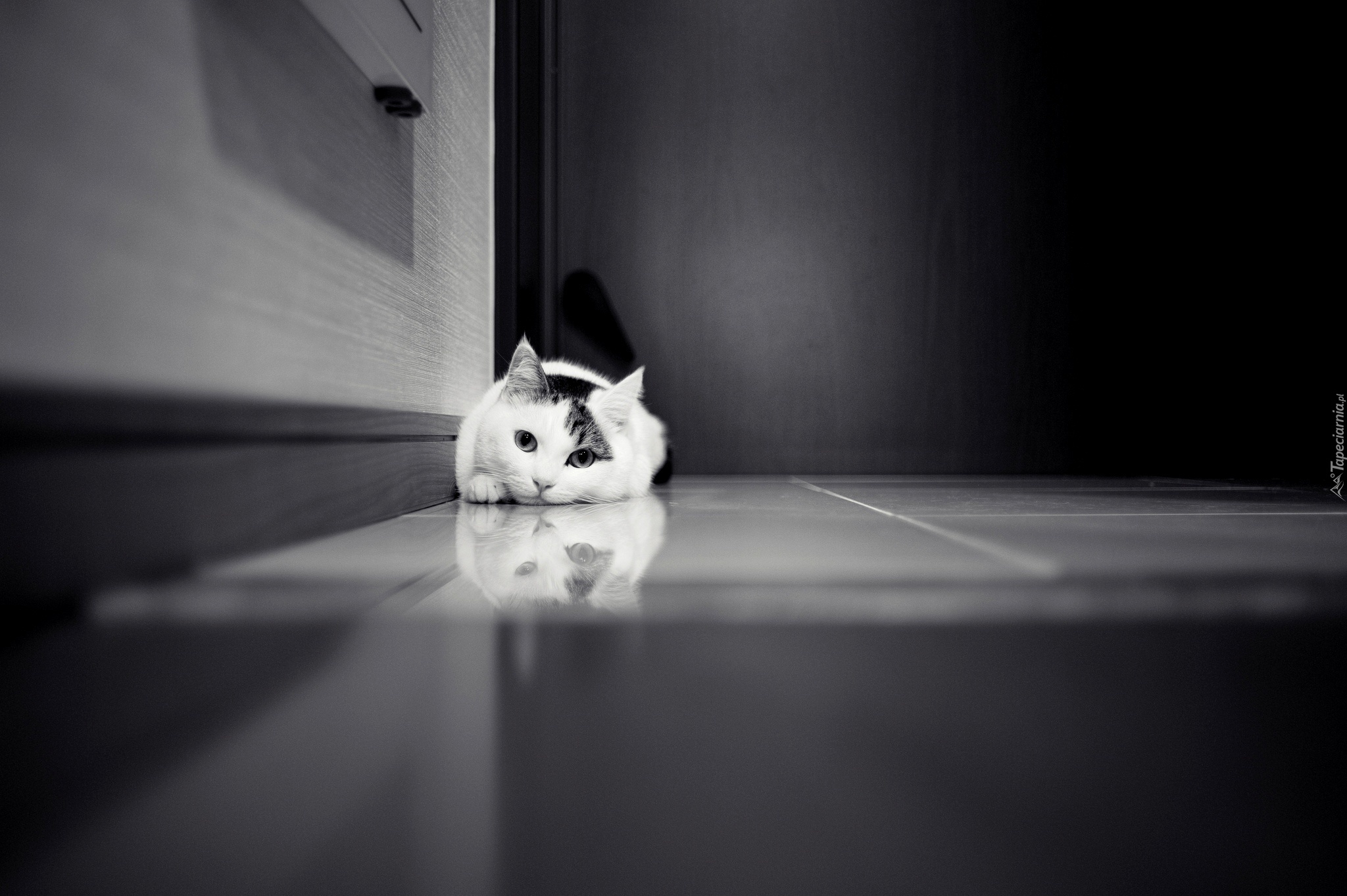 Edytor tapety: Kot, Podłoga, Czarno-Białe