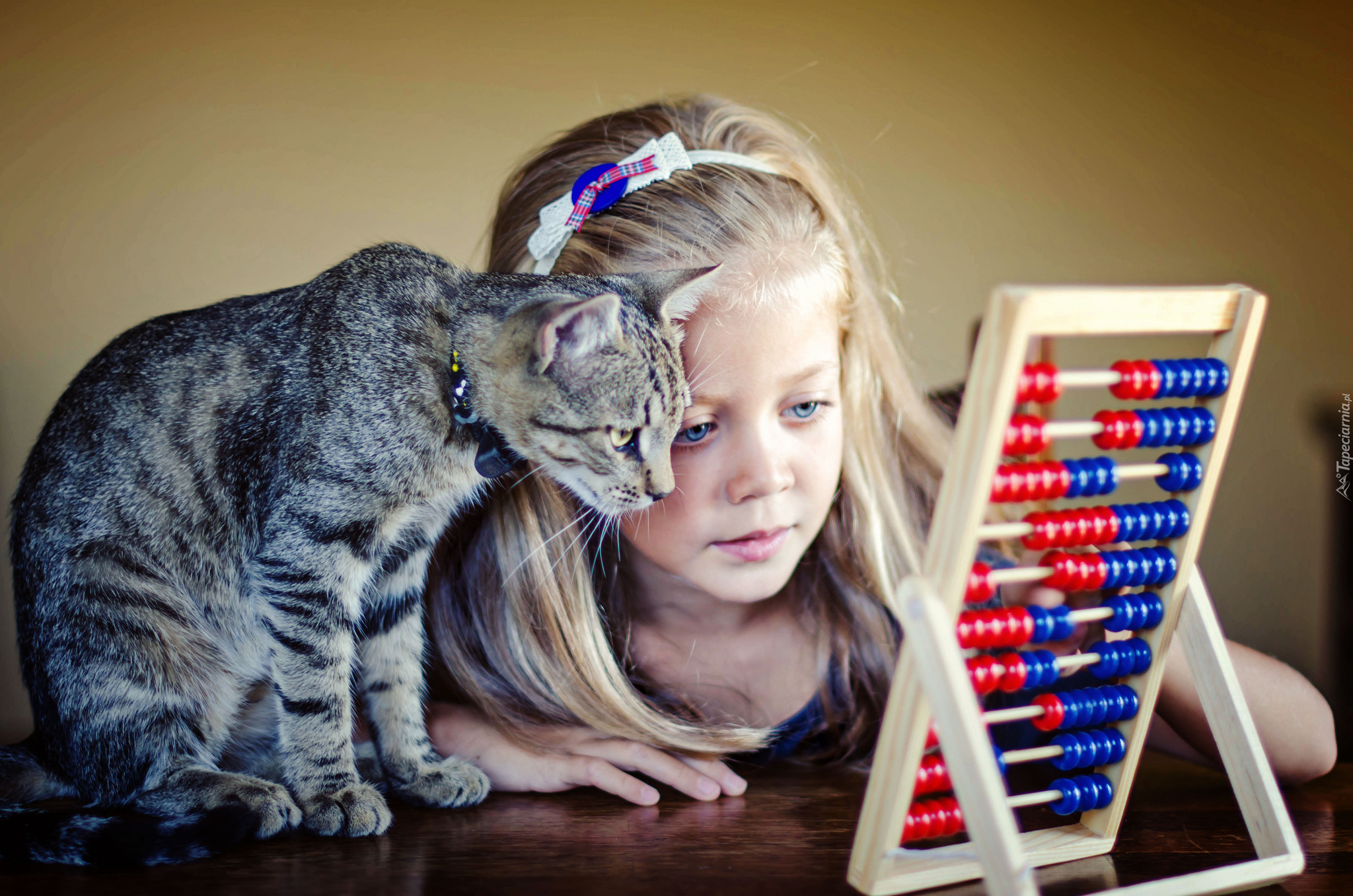 Edytor tapety: Dziecko, Dziewczynka, Kot, Liczydło