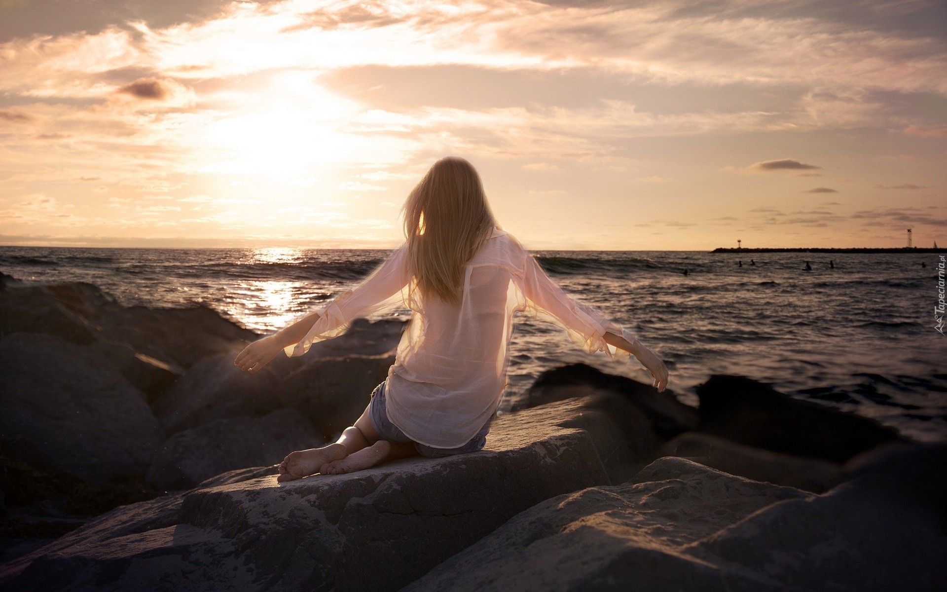 Edytor tapety: Kobieta, Morze, Zachód Słońca