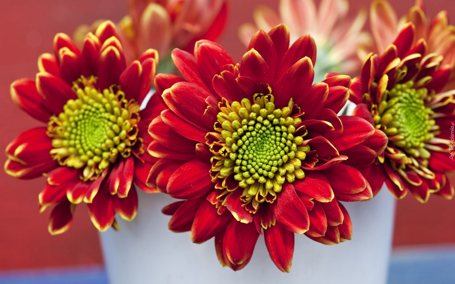 Edytor tapety: Czerwono, Żółte, Chryzantemy, Biały, Wazon
