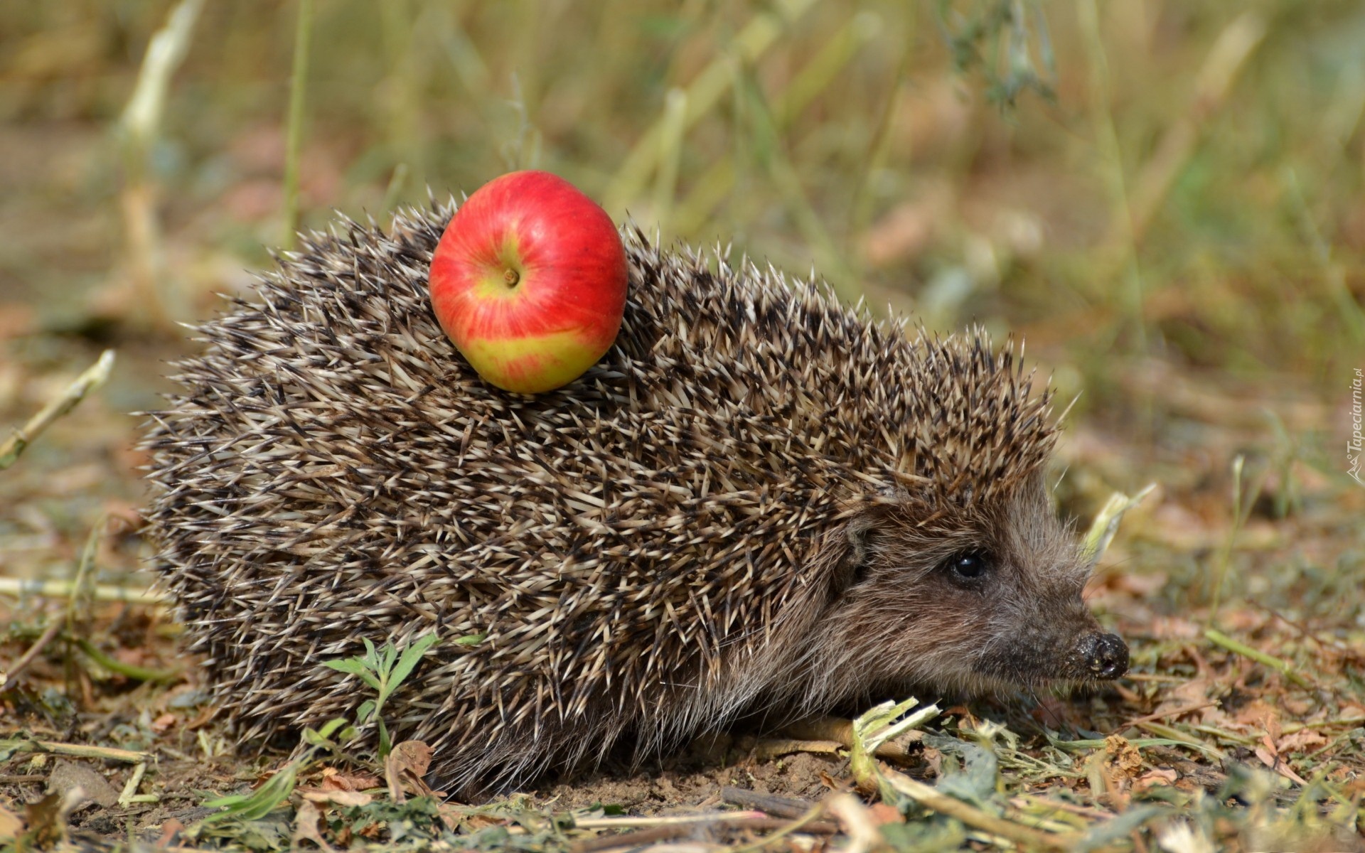 Edytor tapety: Jeż, Jabłko, Suche, Trawy