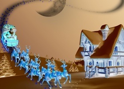 Edytor tapety: Mikołaj, Renifery, Prezenty, Zima, Grafika 2D