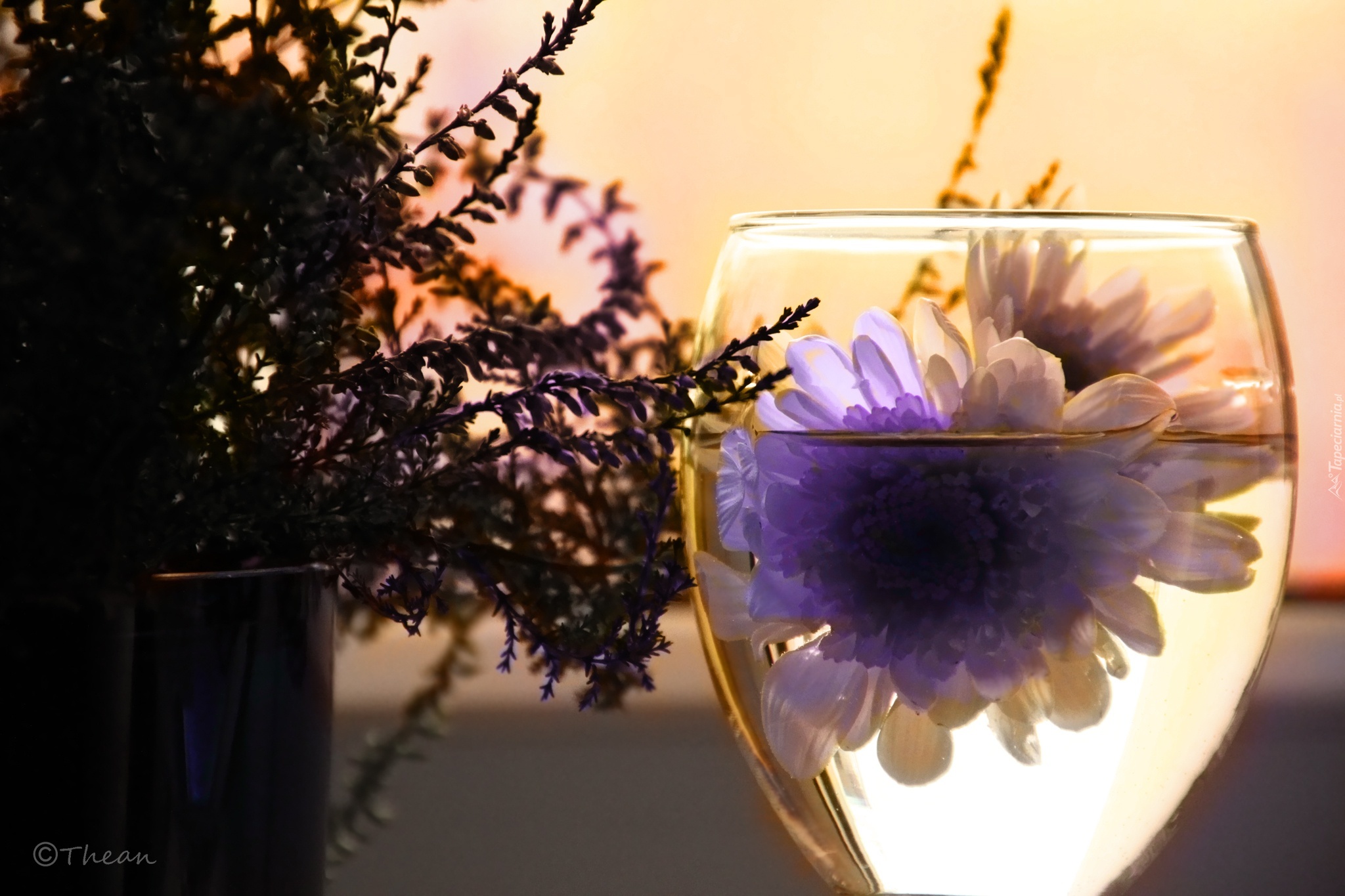 Edytor tapety: Wrzos, Kwiaty, Kieliszek