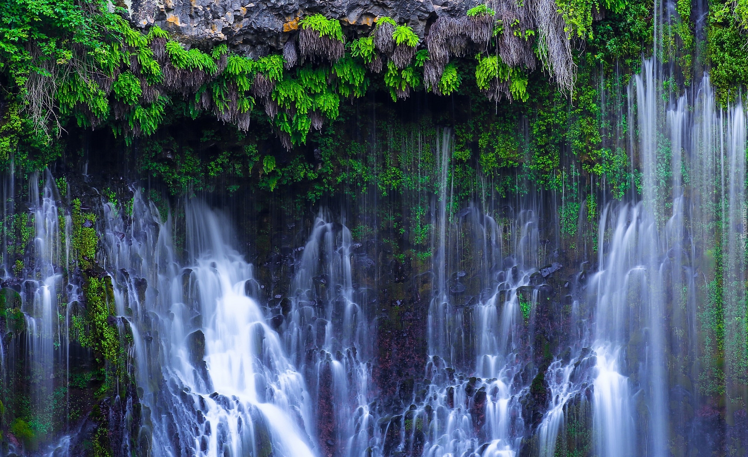 Edytor tapety: Wodospad, Skały, Rośliny