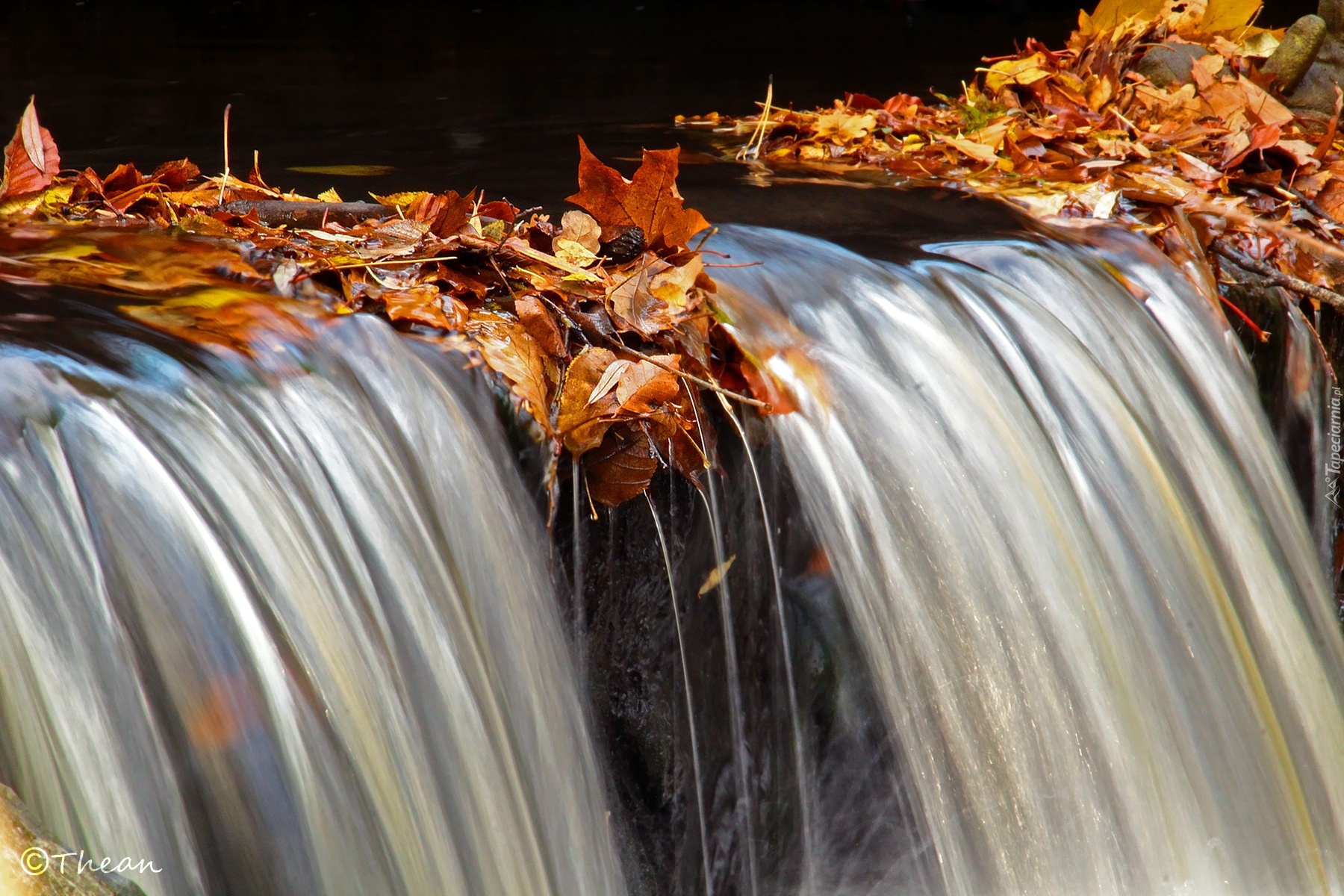 Edytor tapety: Mały, Wodospad, Suche, Liście