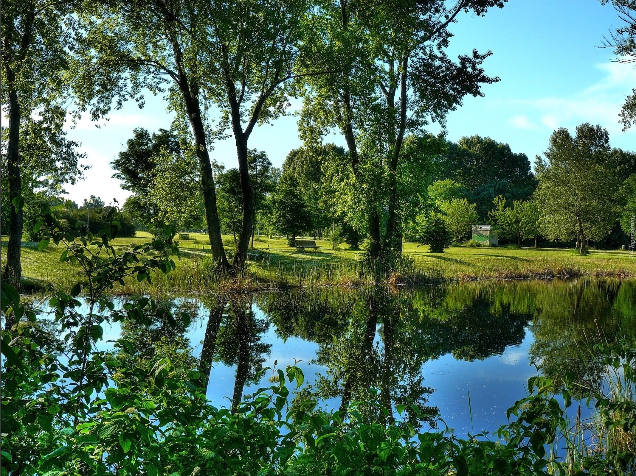 Edytor tapety: Park, Staw, Roślinność, Drzewa