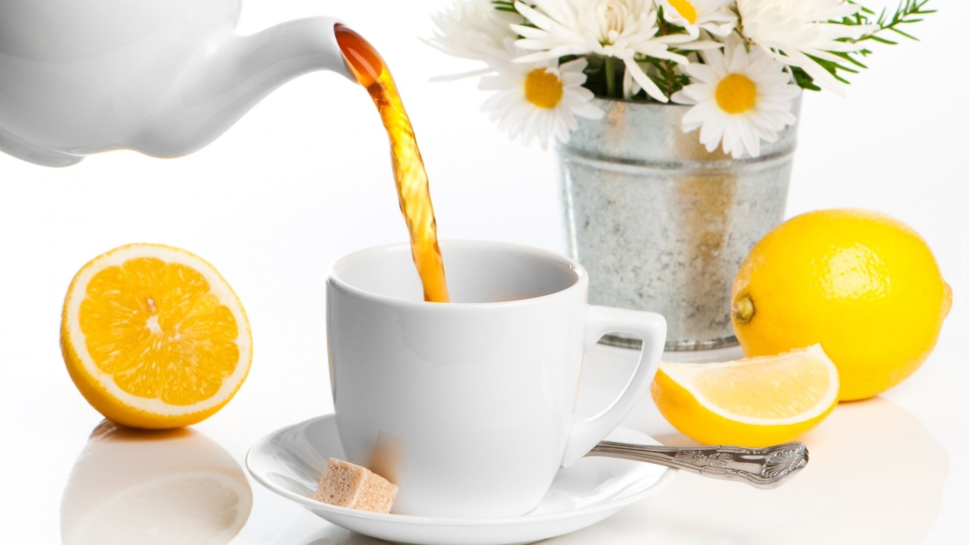 Edytor tapety: Herbata, Cytryna, Biała, Filiżanka