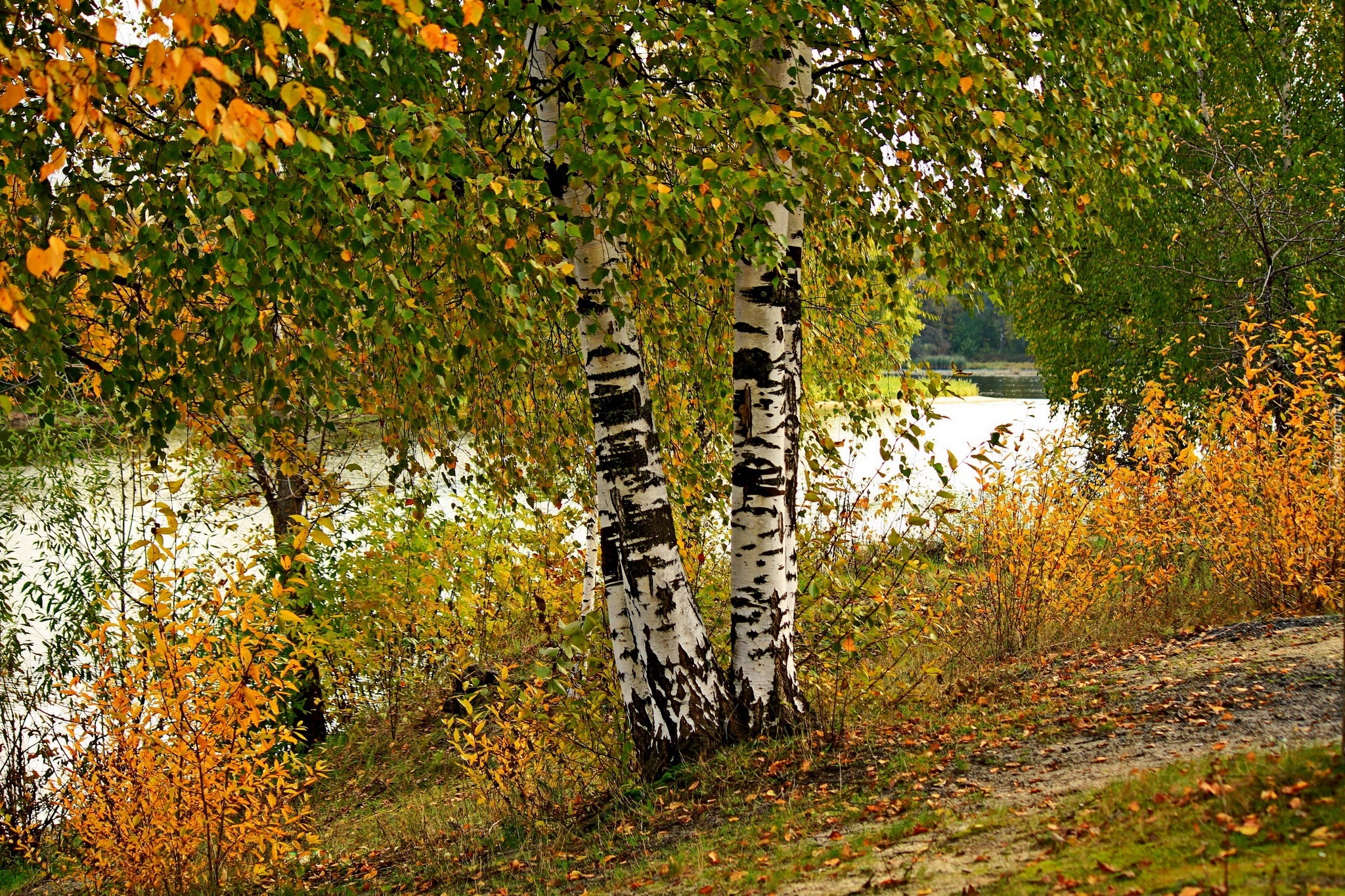 Edytor tapety: Rzeka, Brzozy, Liście, Jesień