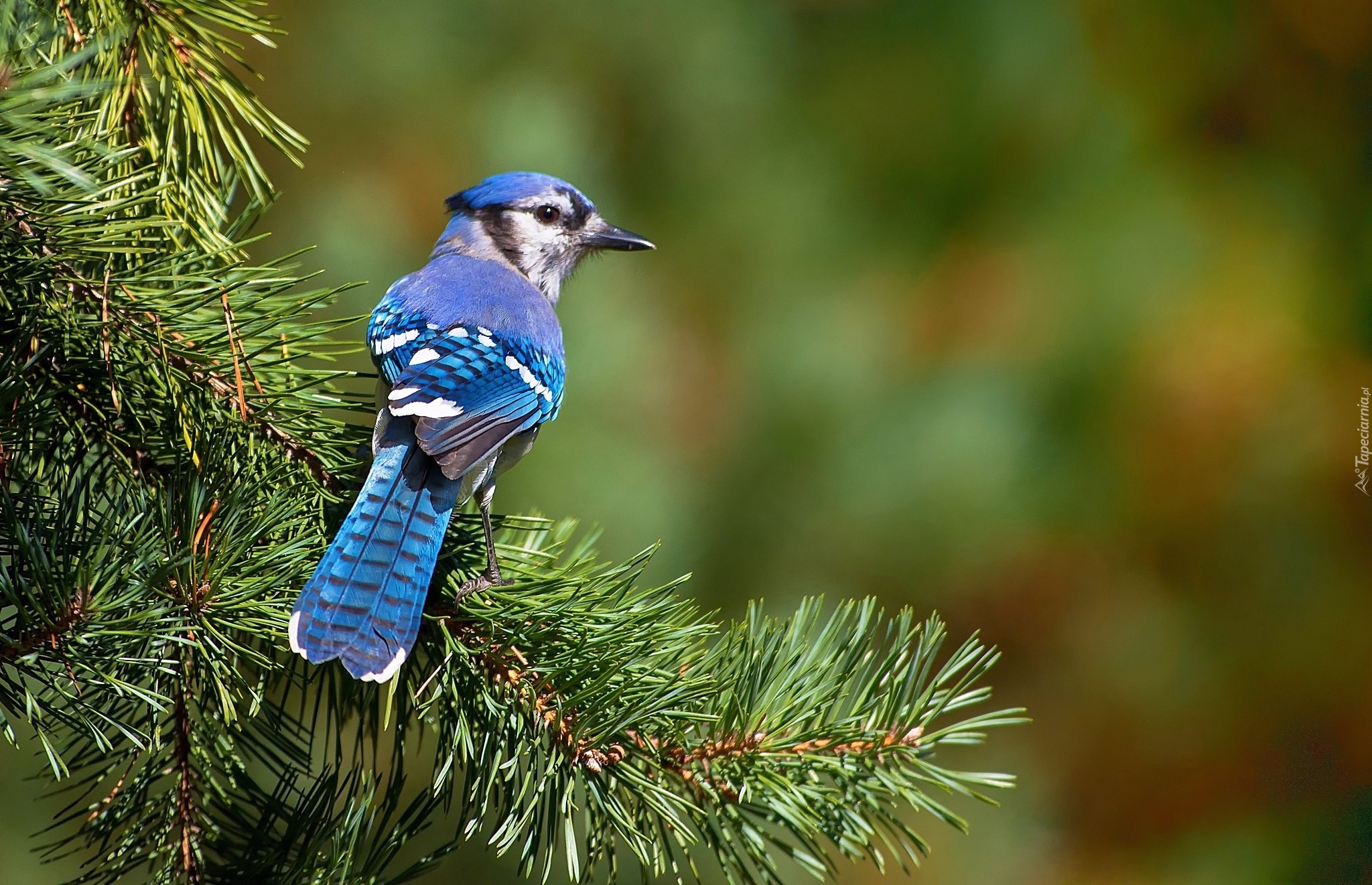 Edytor tapety: Modrosójka, Gałązka, Świerk