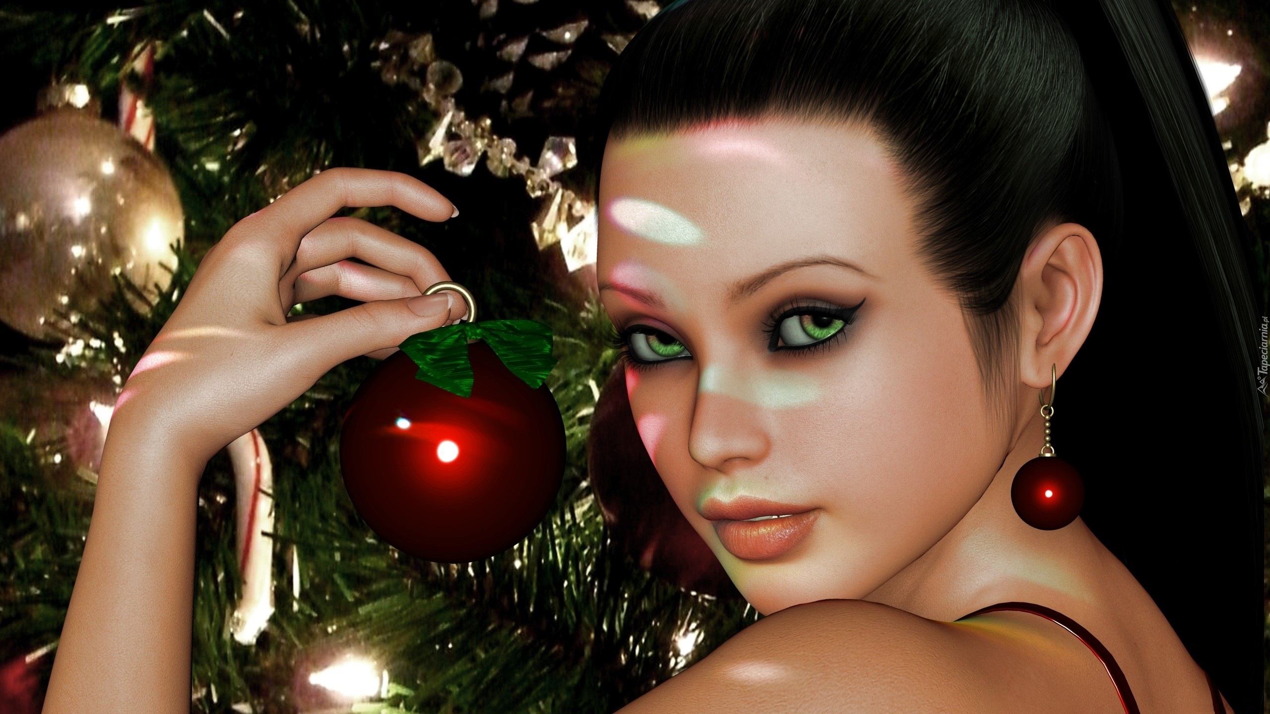 Edytor tapety: Kobieta, Choinka, Boże Narodzenie