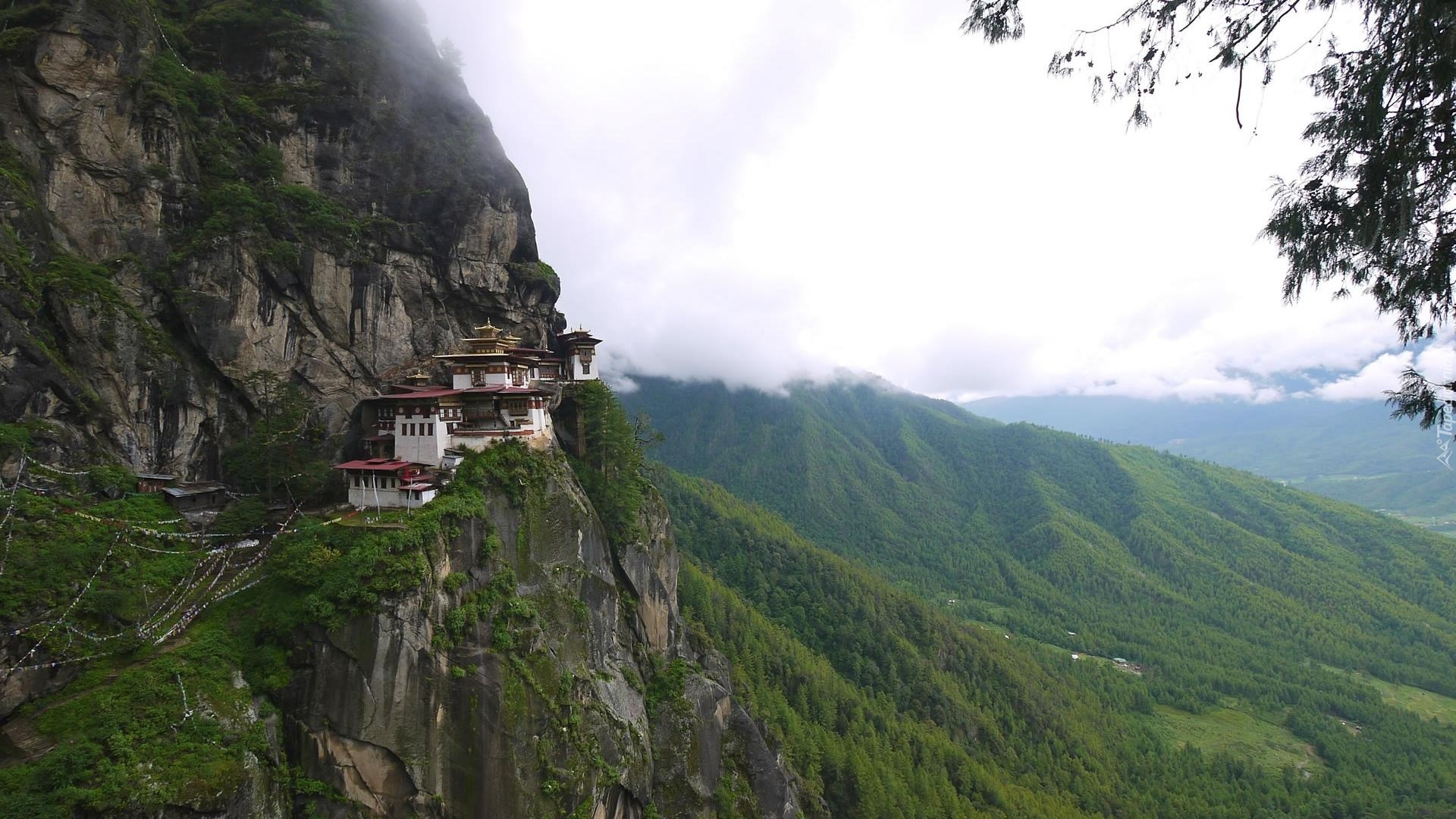 Edytor tapety: Świątynia, Paro Taktsang, Bhutan, Skały, Góry, Himalaje