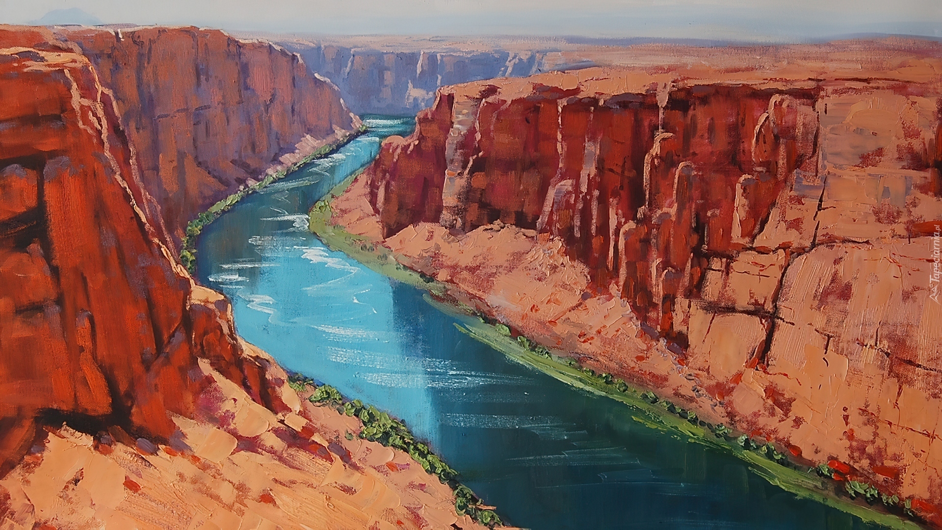 Edytor tapety: Malarstwo, Obraz, Stany Zjednoczone, Stan Arizona, Park Narodowy Wielkiego Kanionu, Kanion, Rzeka Kolorado