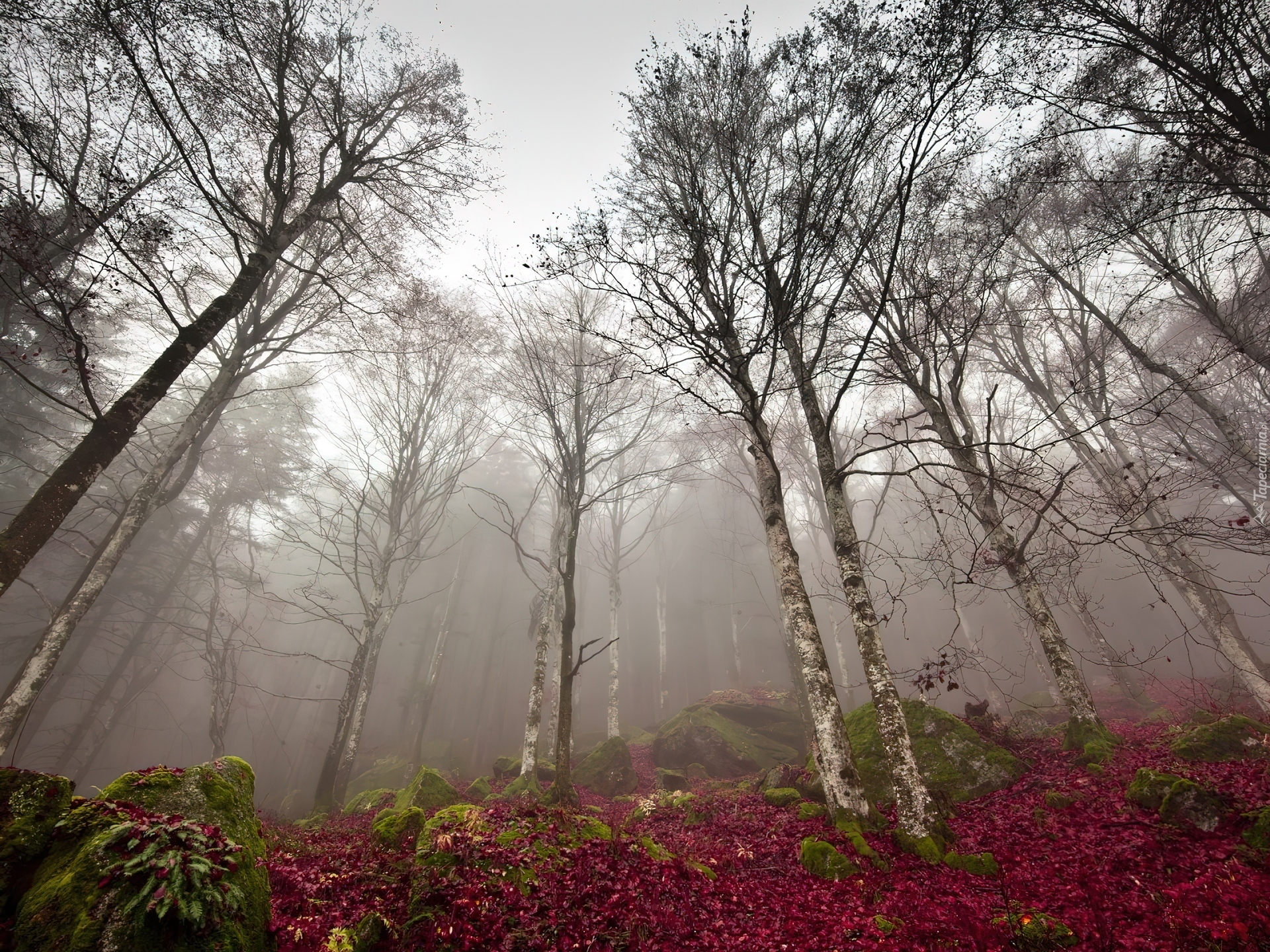 Edytor tapety: Drzewa, Brzozy, Mgła, Mech