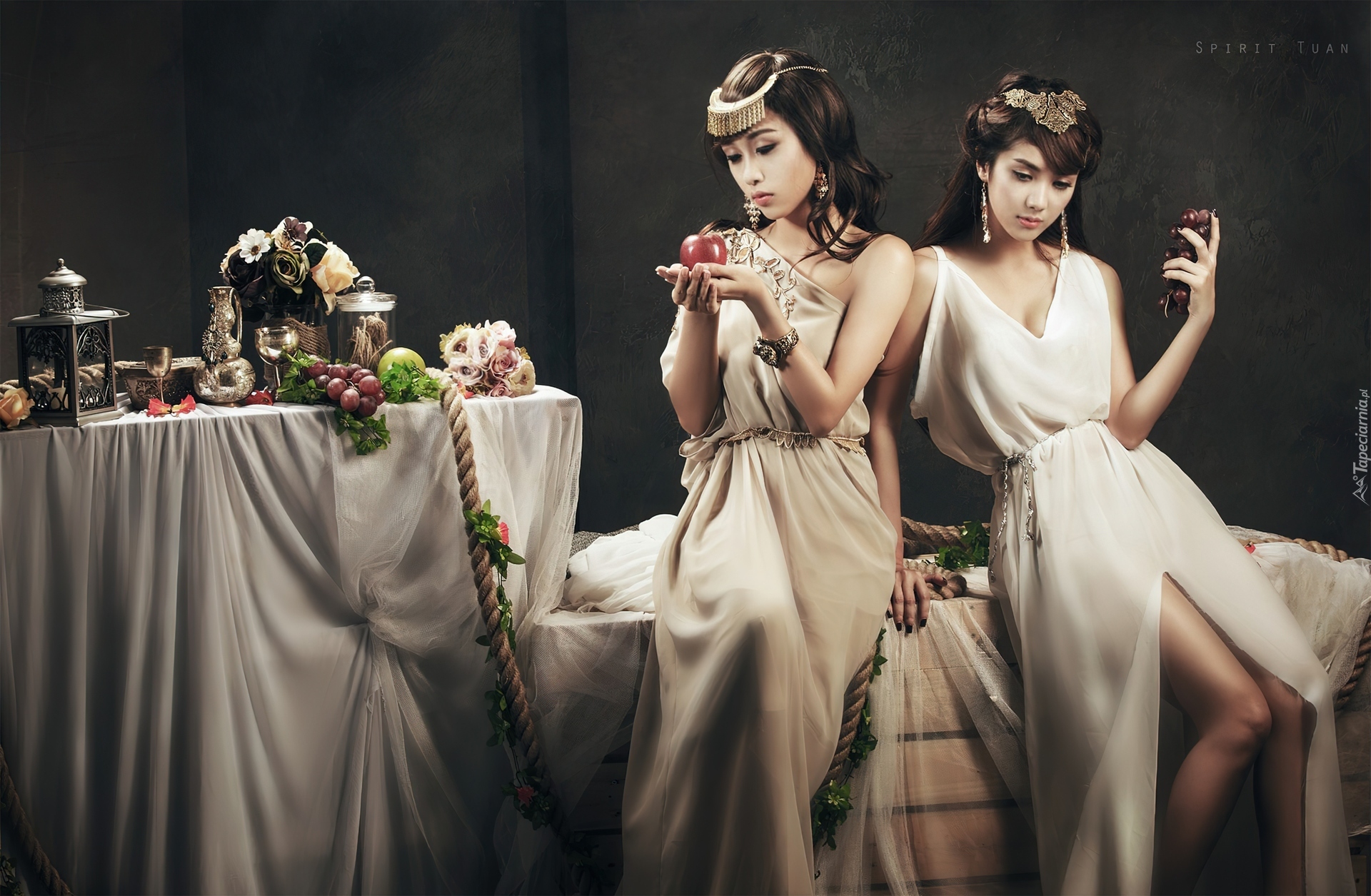 Edytor tapety: Brunetki, Stół, Zastawa