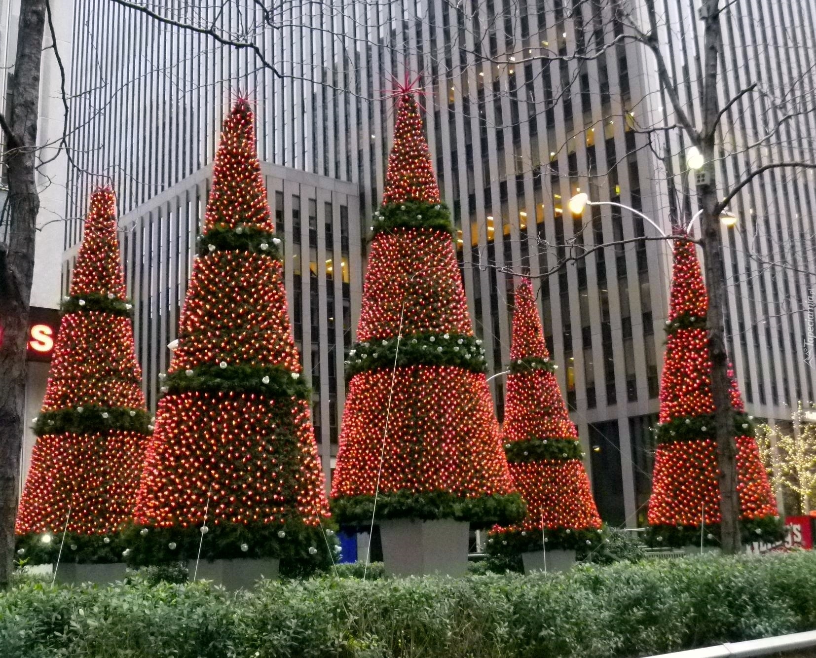 Edytor tapety: Drapacz, Chmur, Udekorowane, Świątecznie, Świerki