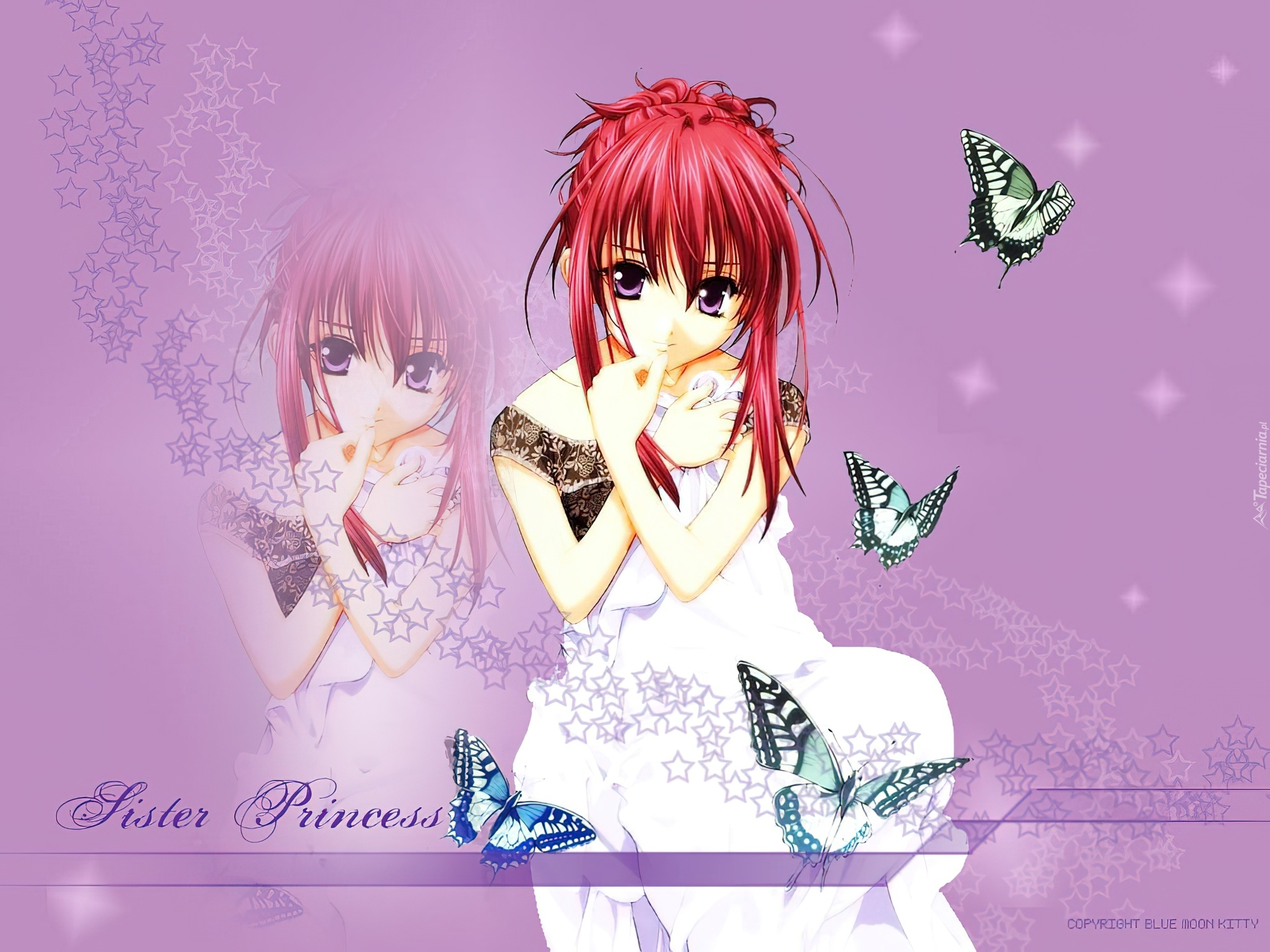 Edytor tapety: Sister Princess, czerwone włosy, motylki