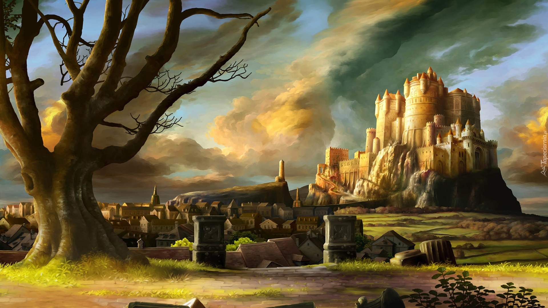 Edytor tapety: Drzewa, Zabytek, Domy, Chmury