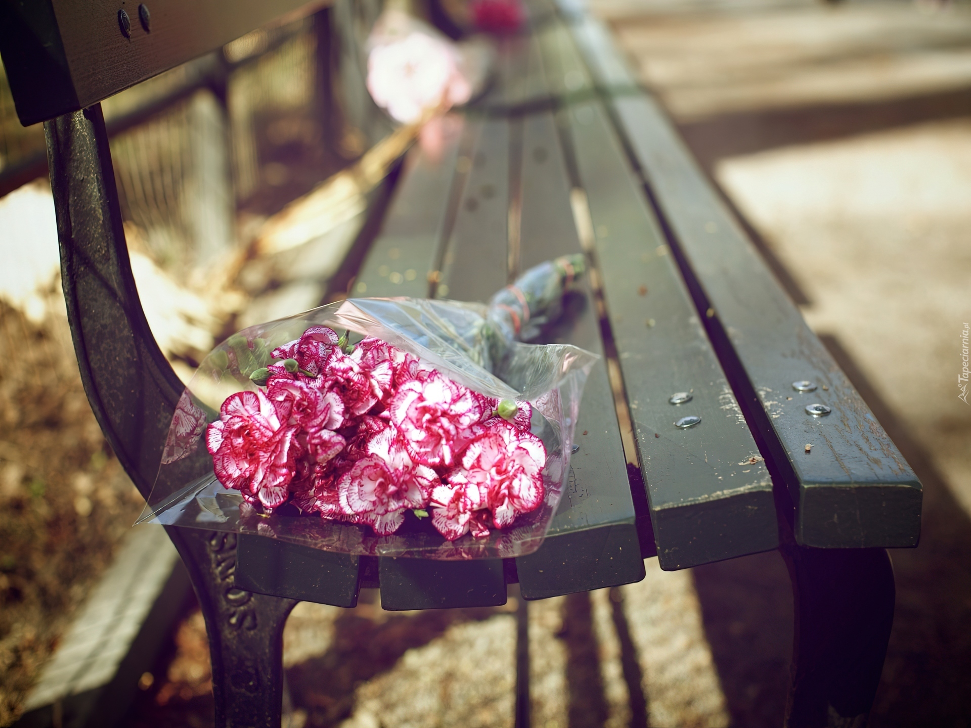 Edytor tapety: Park, Ławka, Bukiet, Goździki