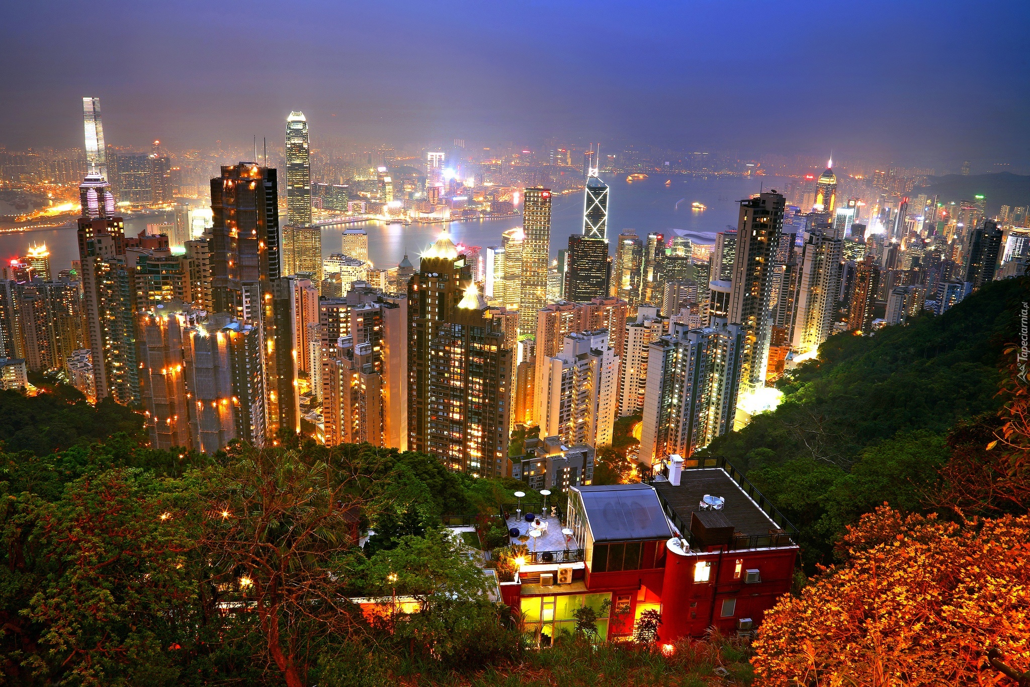 Edytor tapety: Hong Kong, Drapacze, Chmur, Oświetlone, Miasto
