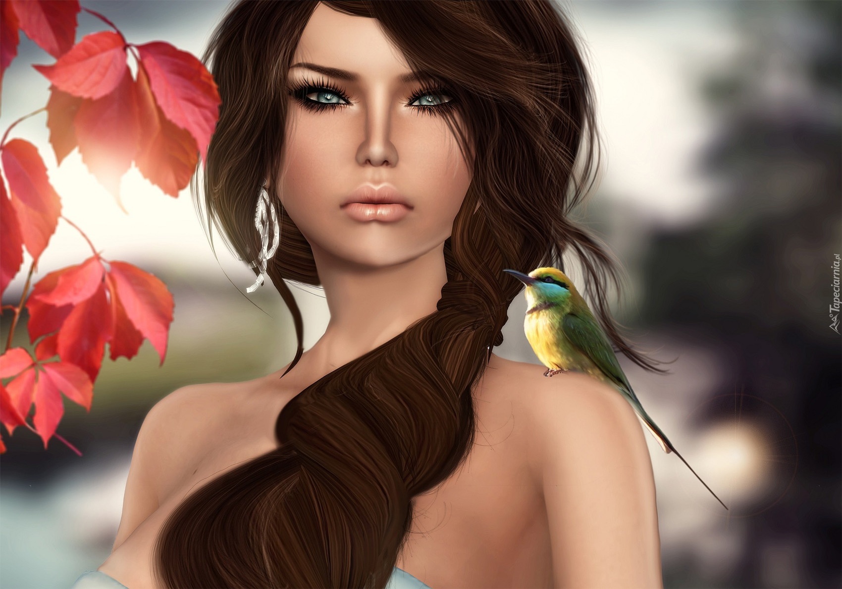 Edytor tapety: Dziewczyna, Brunetka, Żołna, Grafika, Art