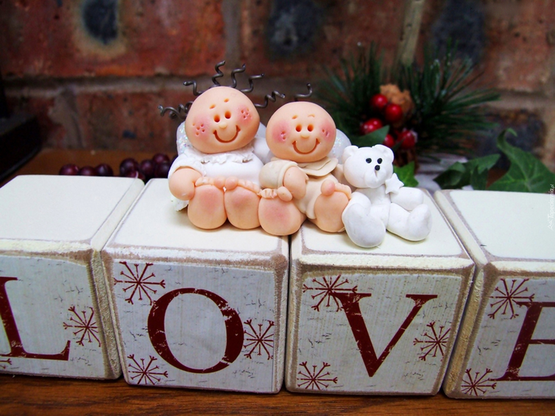 Edytor tapety: Napis, Kostki, Lale, Miś, Stroik