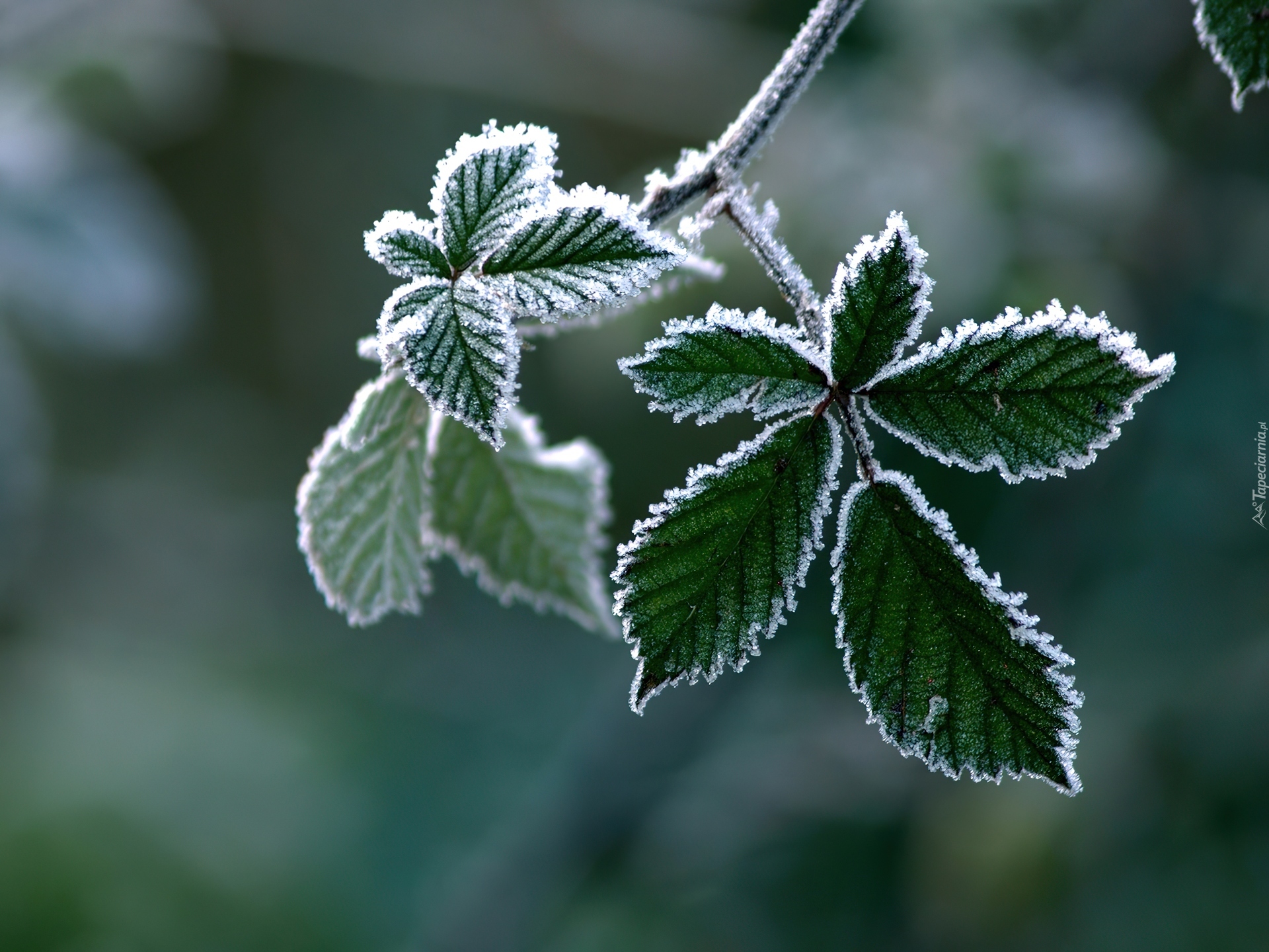 Edytor tapety: Zielone, Liście, Szron, Mróz