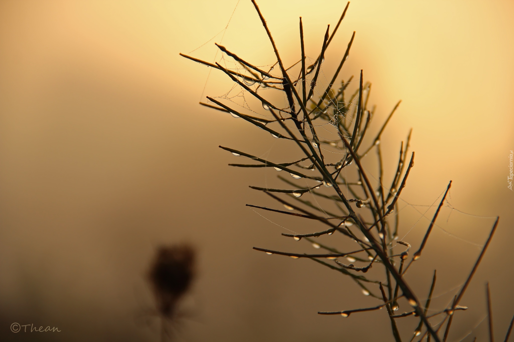 Edytor tapety: Roślina, Krople, Pajęczyny