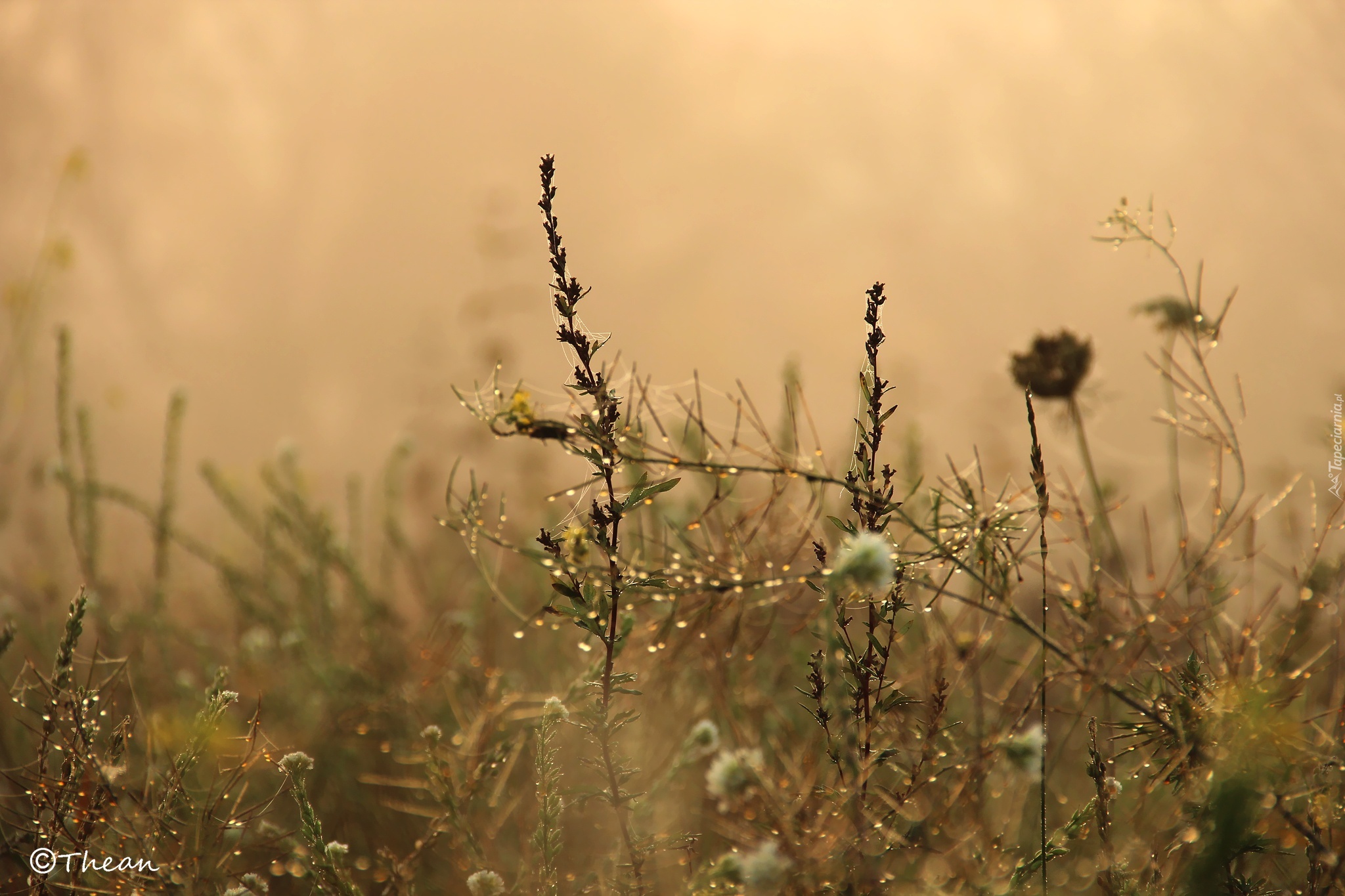 Edytor tapety: Łąka, Mgła, Rośliny, Krople