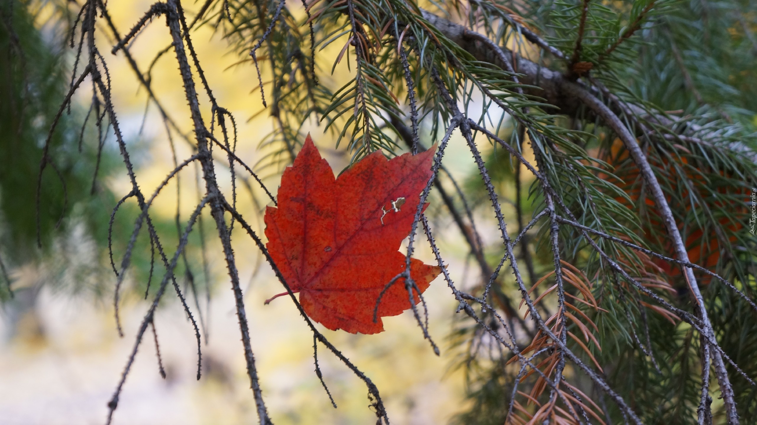 Edytor tapety: Gałązka, Sosny, Czerwony, Liść, Klonu