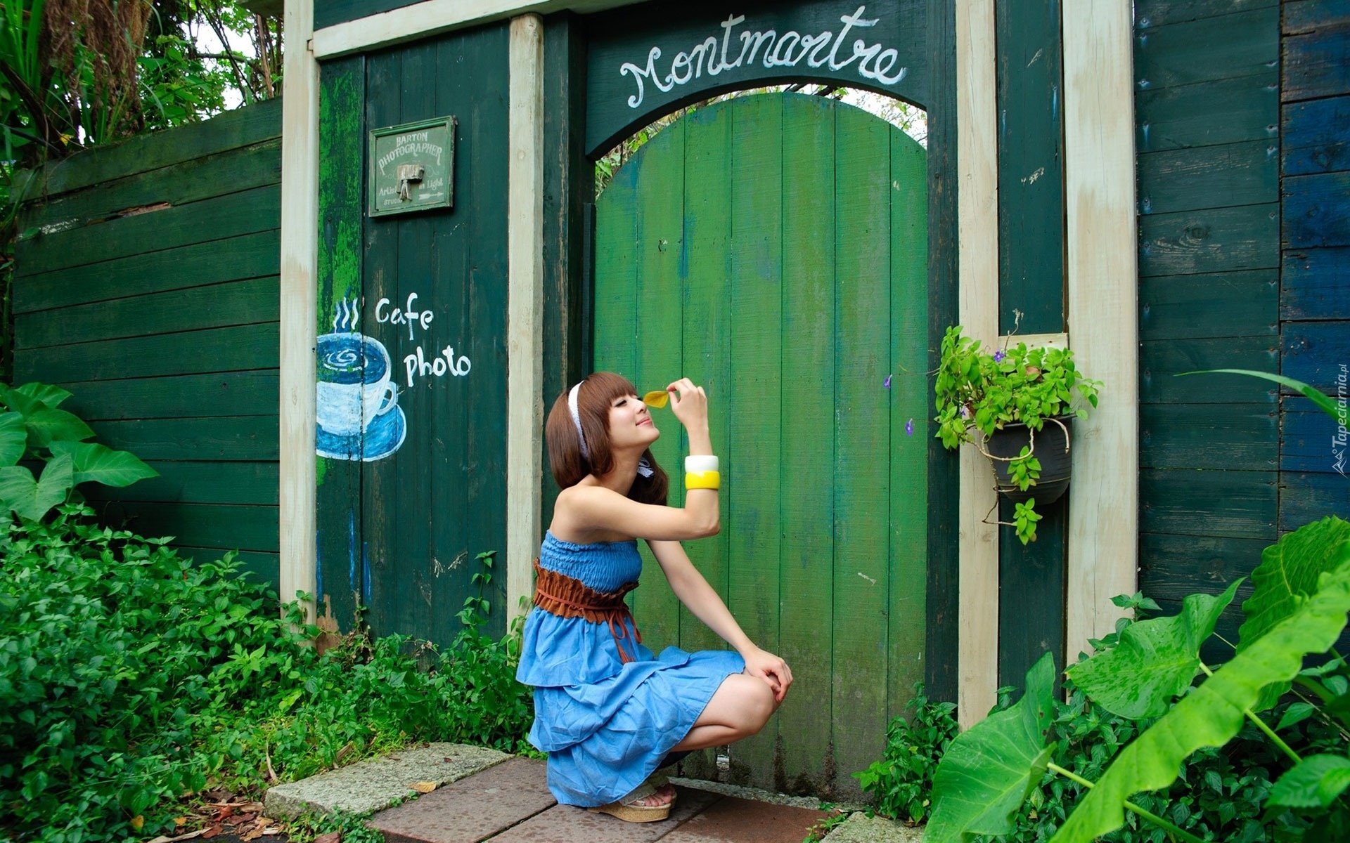 Edytor tapety: Brunetka, Roślinność, Drewniany, Płot, Drzwi