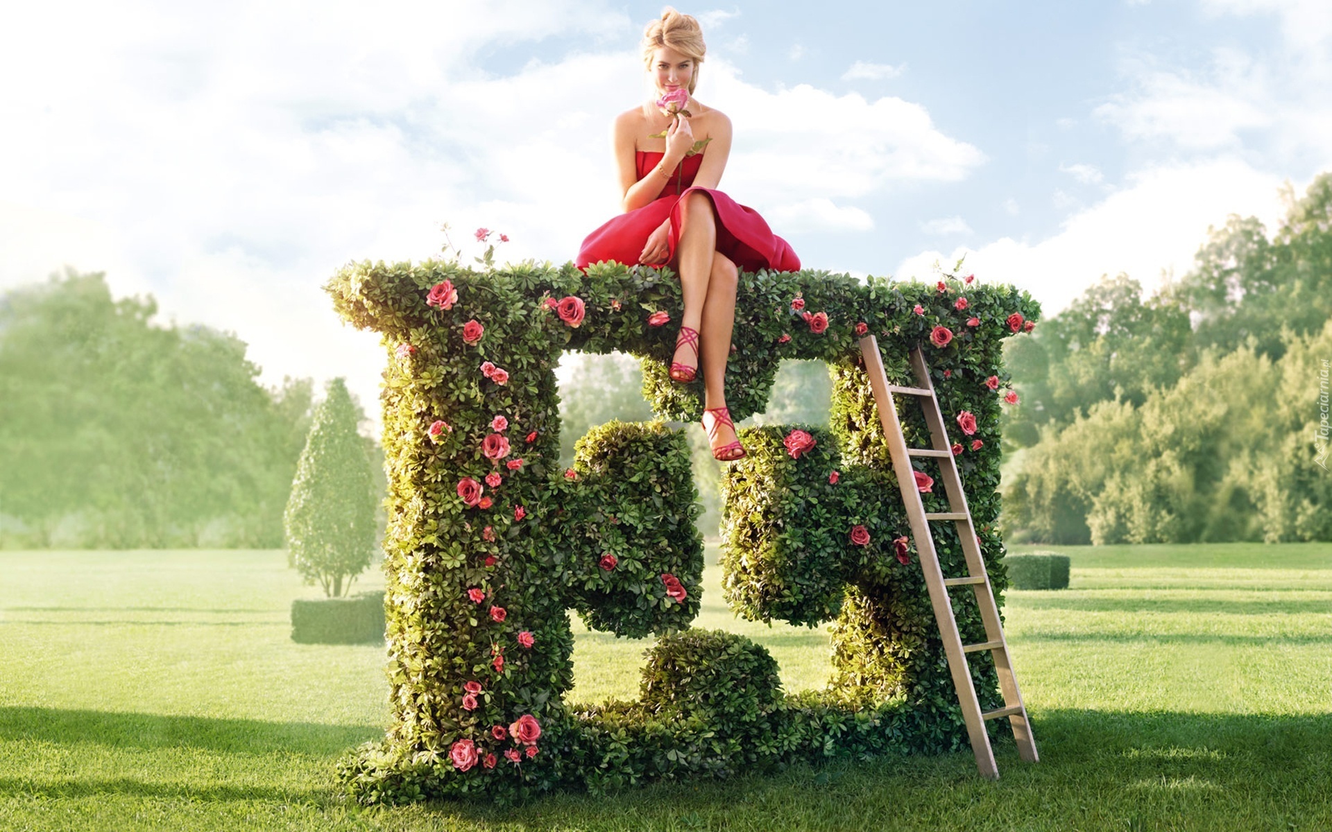 Edytor tapety: Bar Refaeli, Czerwona, Sukienka, Drabina