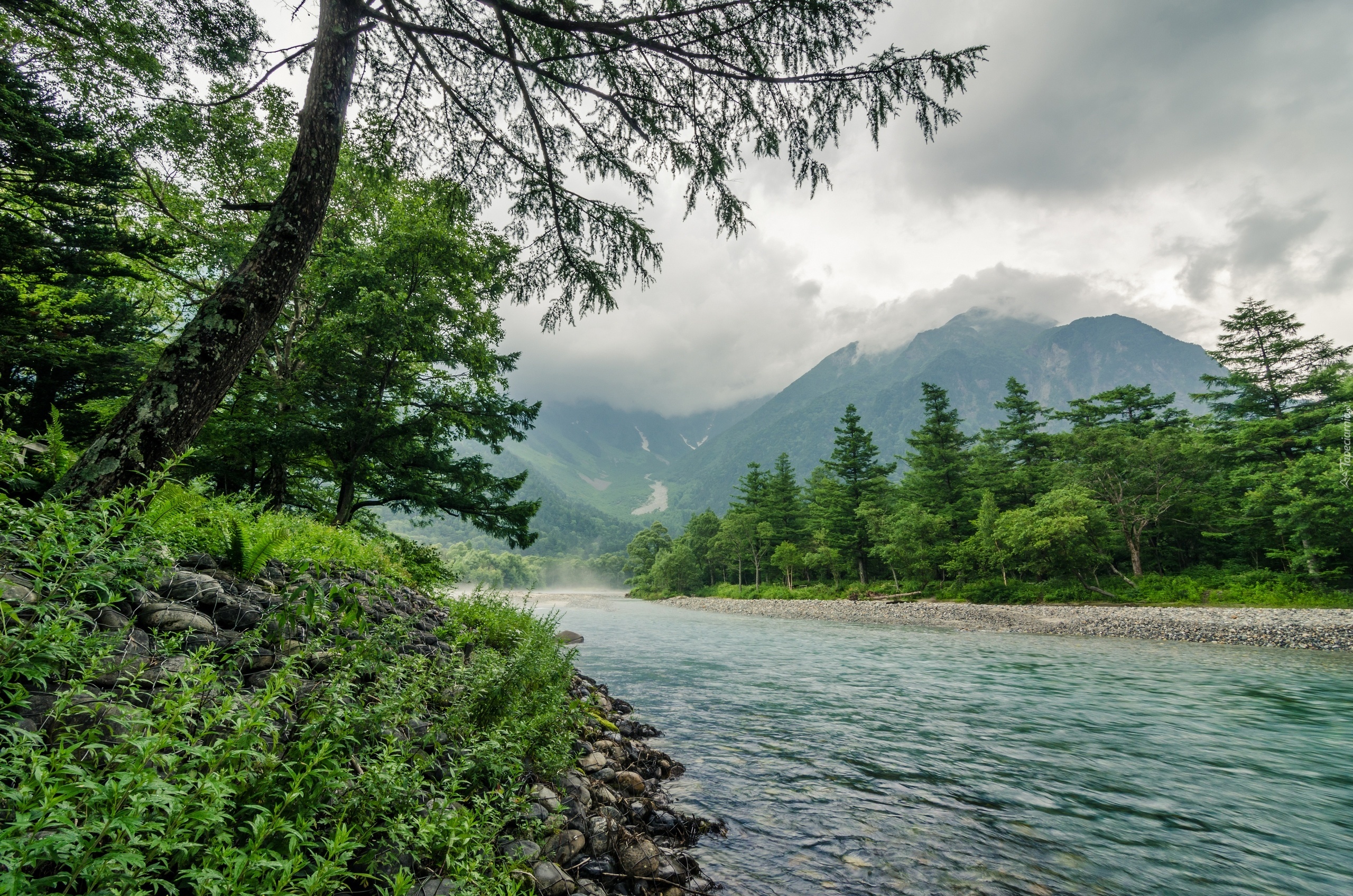 Edytor tapety: Góry, Rzeka, Drzewa