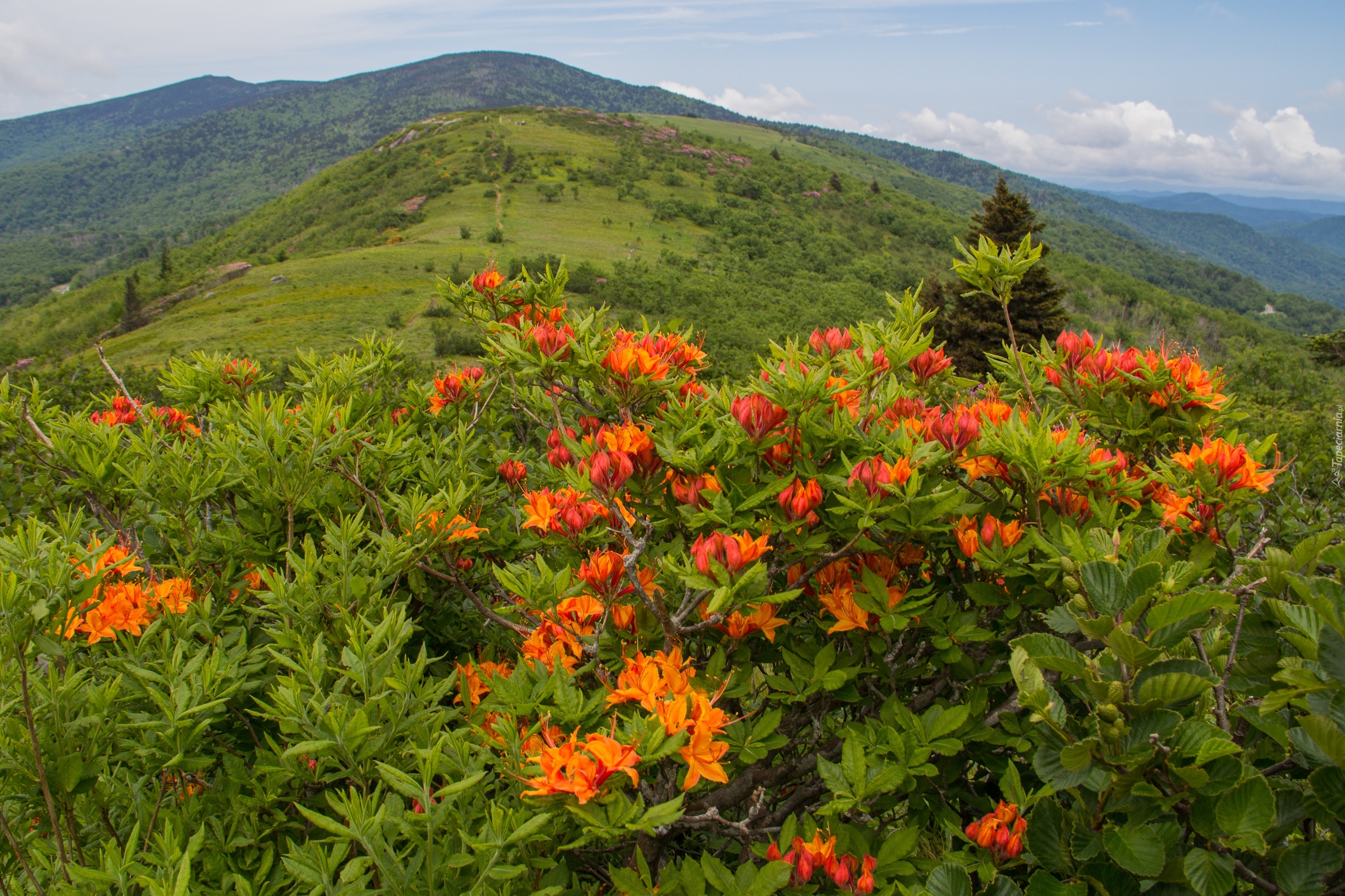 Edytor tapety: Góry, Krzewy, Kwiaty
