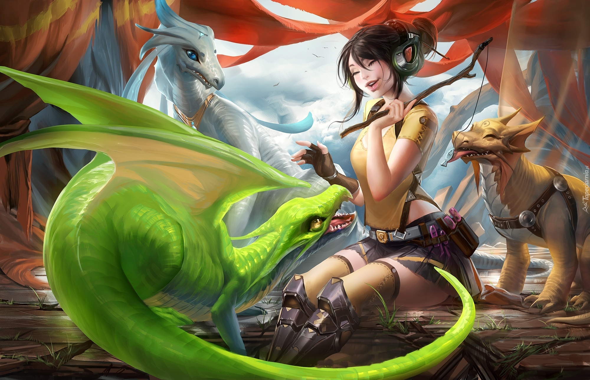 Edytor tapety: Grafika, Dziewczyna, Smoki