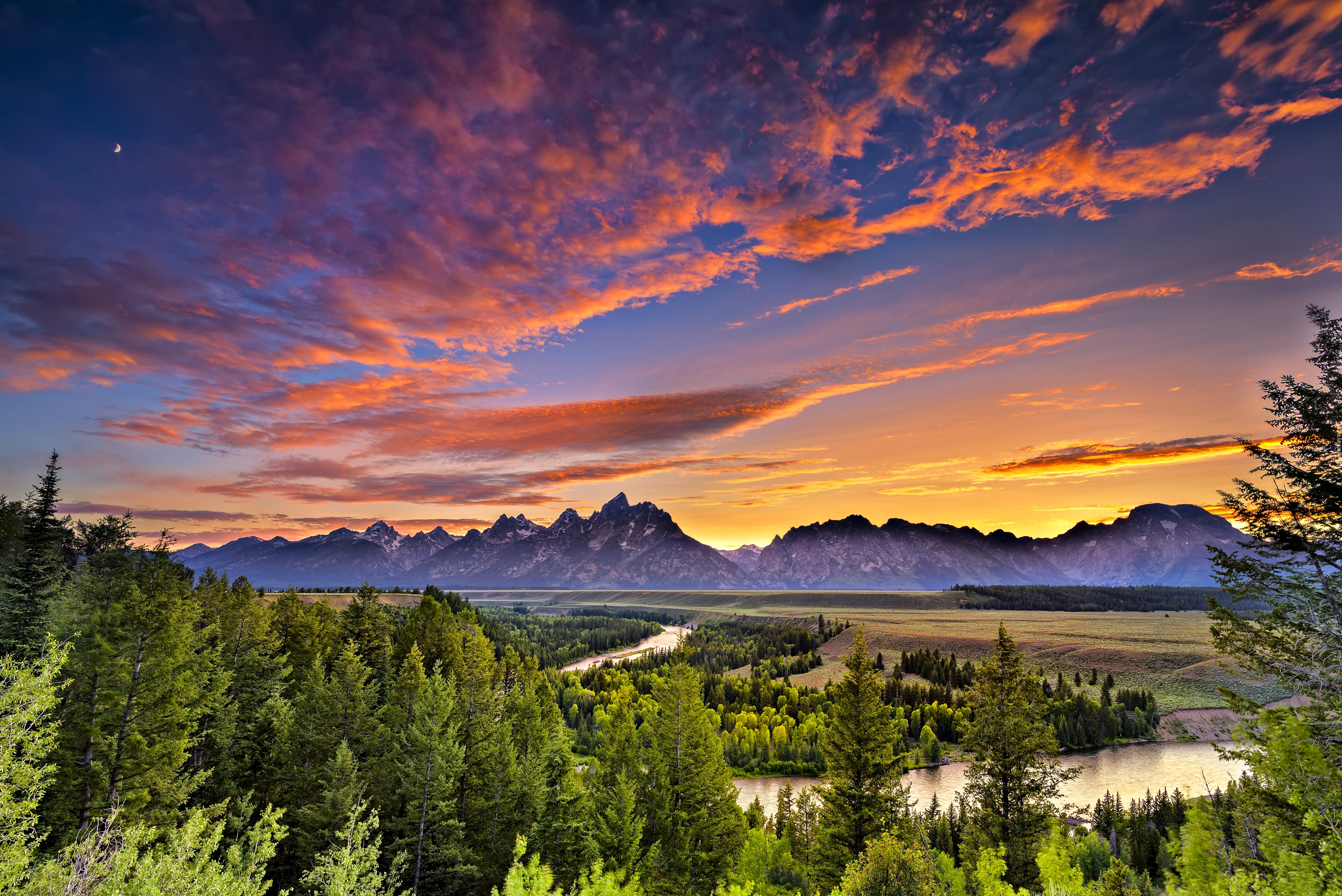 Edytor tapety: Góry, Rzeka, Las, Niebo