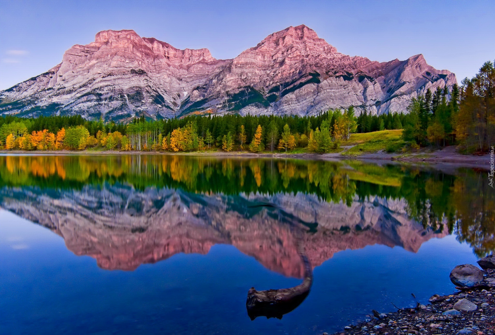 Edytor tapety: Jezioro, Skały, Drzewa, Odbicie