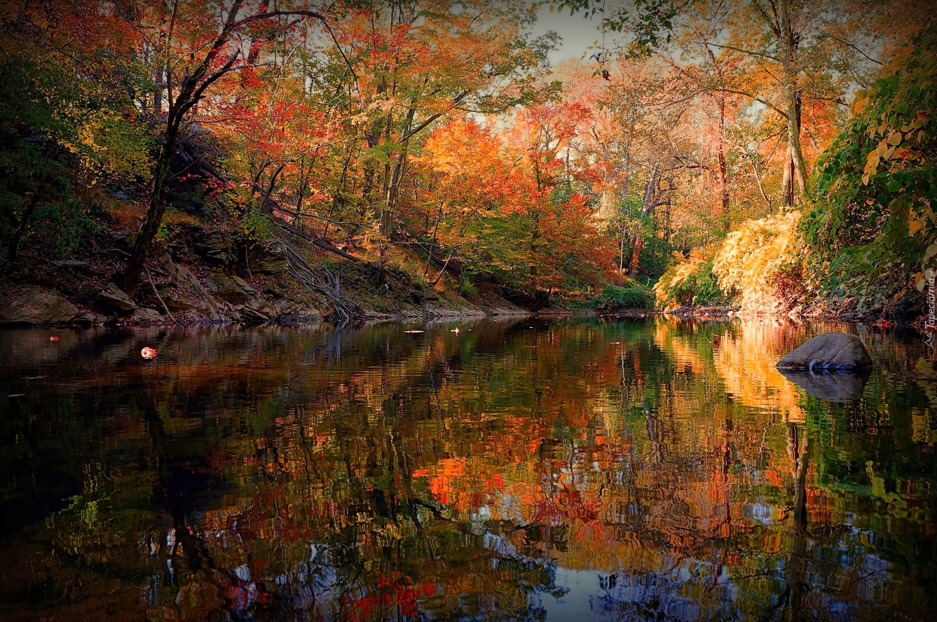 Edytor tapety: Jezioro, Drzewa, Odbicie