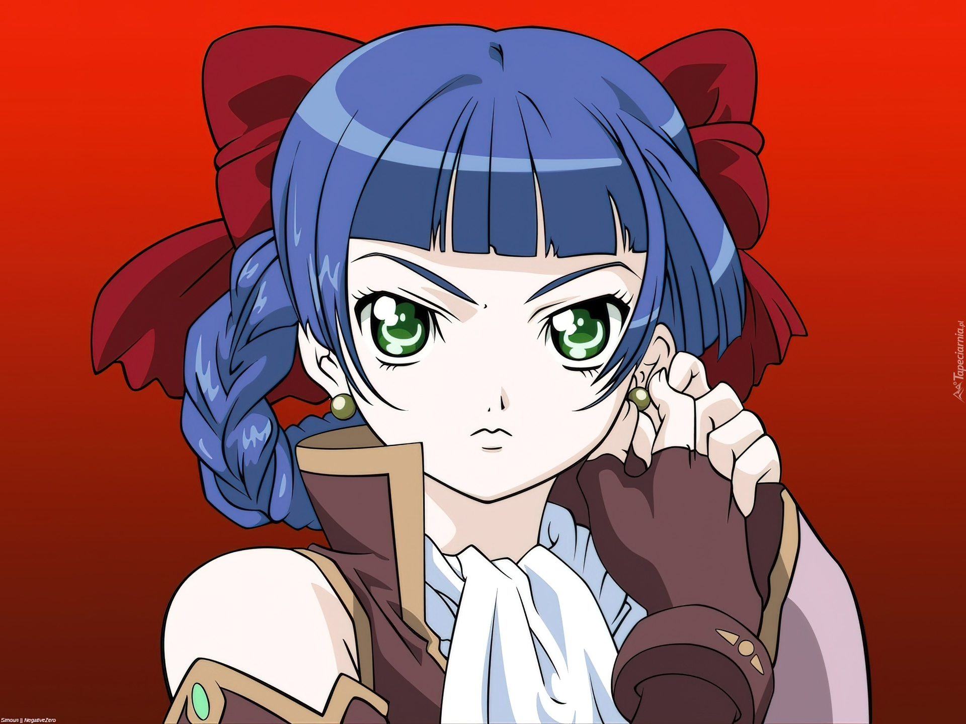 Edytor tapety: Simoun, niebieskie włosy, zielone oczy