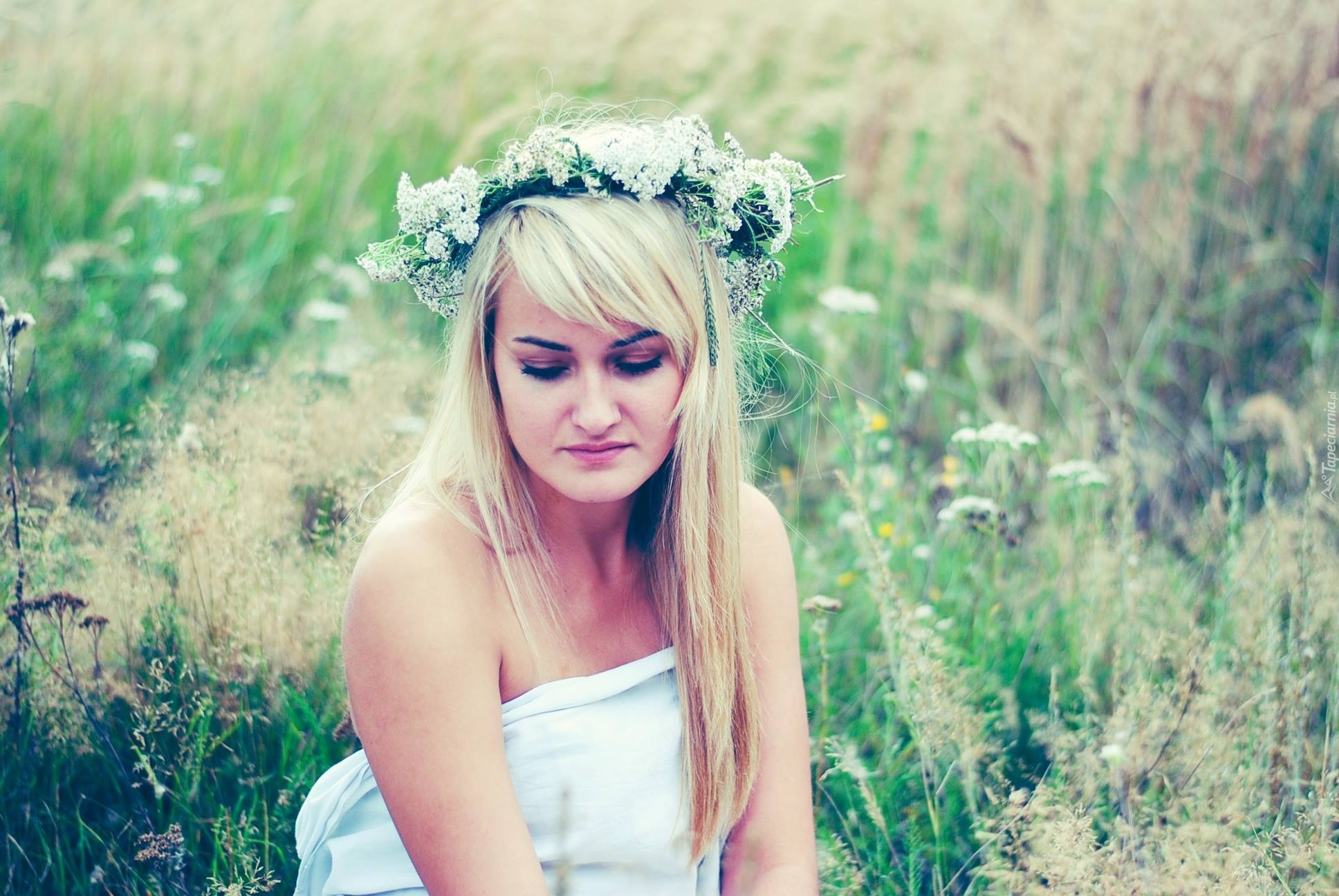 Edytor tapety: Kobieta, Blondynka, Wianek, Łąka