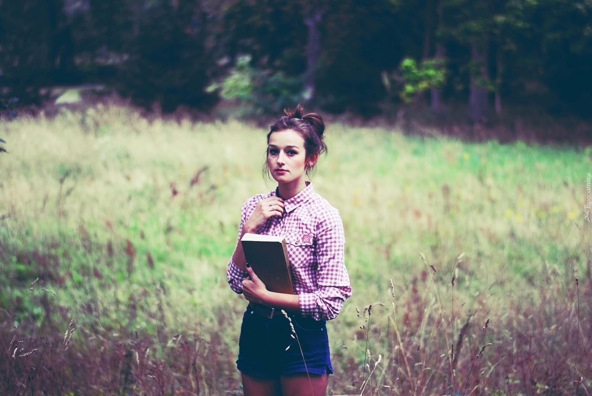 Edytor tapety: Kobieta, Brunetka, Książka, Łąka